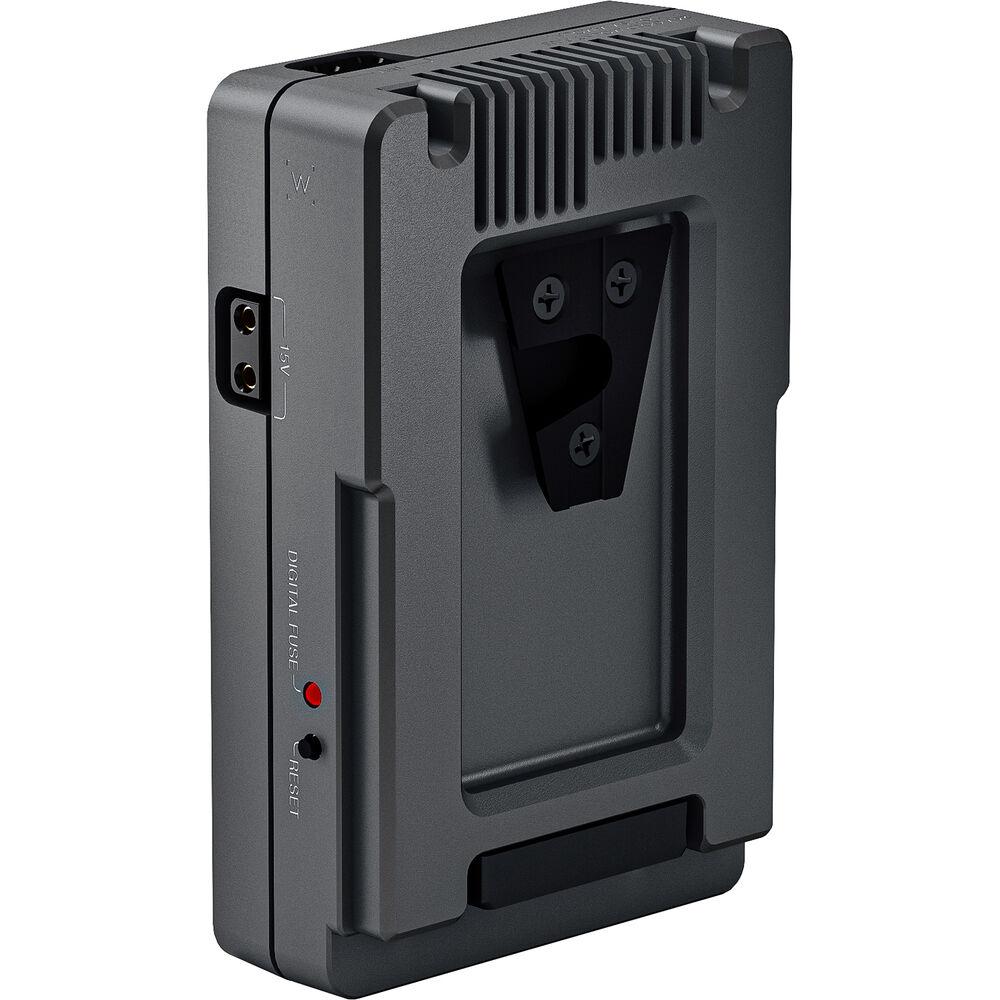 This Gold Mount Plus to V-Mount Converter from Anton/Bauer enables you to use a Gold Mount Plus battery safely on cameras, lights, and other devices that power via V-mount batteries. The converter drops the output voltage of your Gold Mount Plus battery from 26 to 14V, making it compatible with standard V-mount battery outputs, and it features two 14V P-Tap outputs for accessories. A digital resettable fuse helps protect your battery, and the converter features a status display indicator.