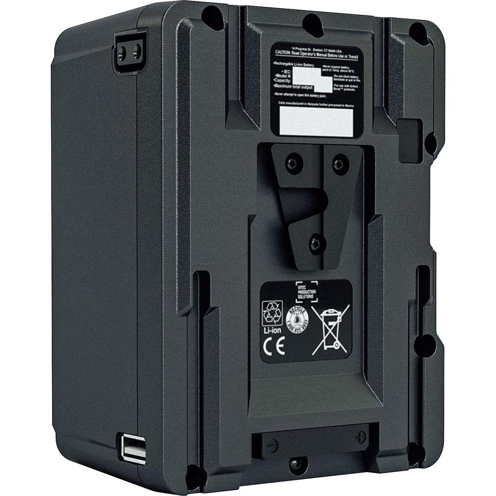 Providing a basic power readout and no user interactive surfaces, the Anton Bauer Titon 150 V-Mount Lithium-Ion Battery can be used to power your V-mount camera or other pro video gear. The lightweight lithium-ion chemistry can provide up to 10 amps of current on a continuous draw and support peaks of up to 12.5 amps for five seconds. At the side of the chassis, an LCD display screen shows battery capacity in percent remaining, and when put under load it shows the exact remaining runtime. Using the D-Tap and USB ports you can power essential accessories on your rig or other small electronics.