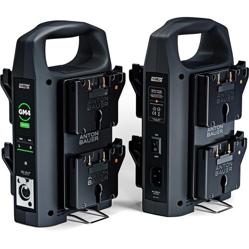 Simultaneously charge four high-capacity Micro batteries quickly while powering another device using this Gold mount GM4 Quad Micro Battery Charger from Anton/Bauer. This four-bay, simultaneous Gold mount battery charger is aimed at location shoots, rental facilities, ENG/EFP/OB vehicles, broadcast equipment depots, or productions that require many batteries to be on charge and ready to go.