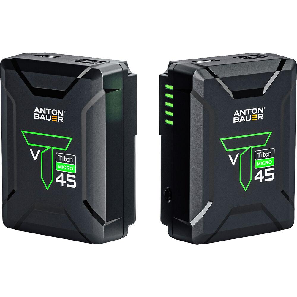 Power your V-mount camera or other power-hungry pro video gear with the ultra-compact Anton Bauer Titon Micro 45 V-Mount Lithium-Ion Battery. This lightweight battery is smaller than the original Titon series models and features lithium-ion chemistry and a V-mount. It provides up to 8A continuous draw and has a 45Wh capacity.