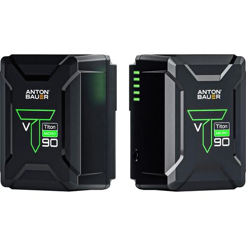 Power your V-mount camera or other power-hungry pro video gear with the ultra-compact Anton Bauer Titon Micro 90 V-Mount Lithium-Ion Battery. This lightweight battery is smaller than the original Titon series models and features lithium-ion chemistry and a V-mount. It provides up to 10A continuous draw and has a 98Wh capacity.
