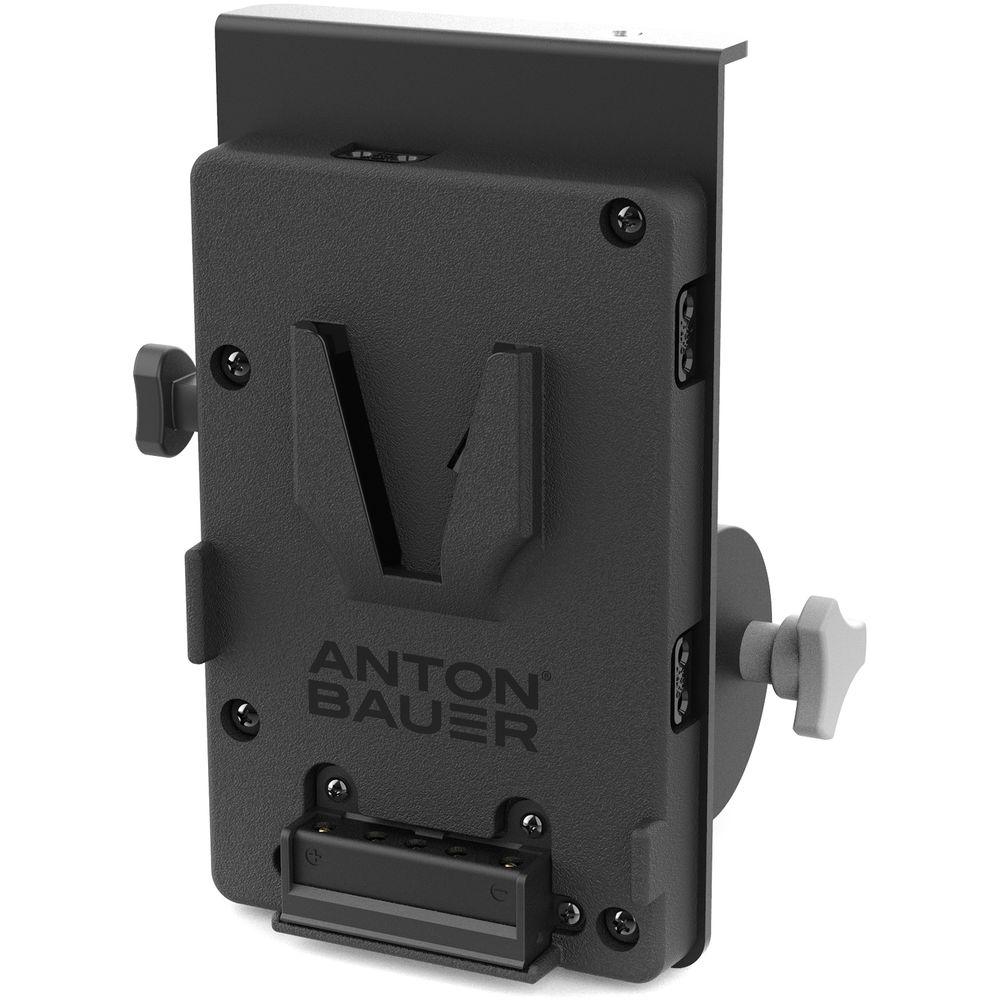 The V-Mount Bracket with Clamp for Light Stands by Anton/Bauer allows a V-mount battery to be fastened to the riser section of a light stand. Integrated into the unit is a Manfrotto Mini Clamp and three D-Tap outputs for powering multiple lights.
