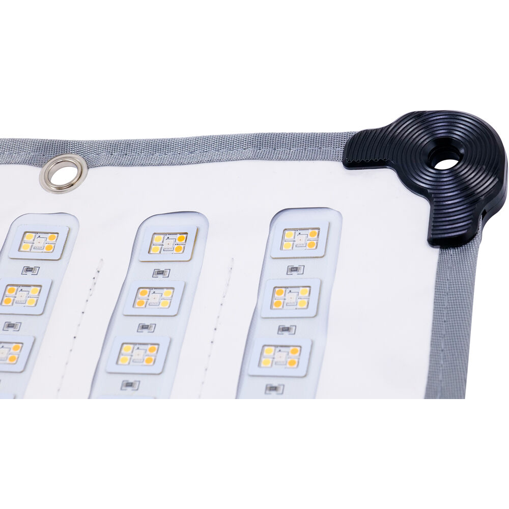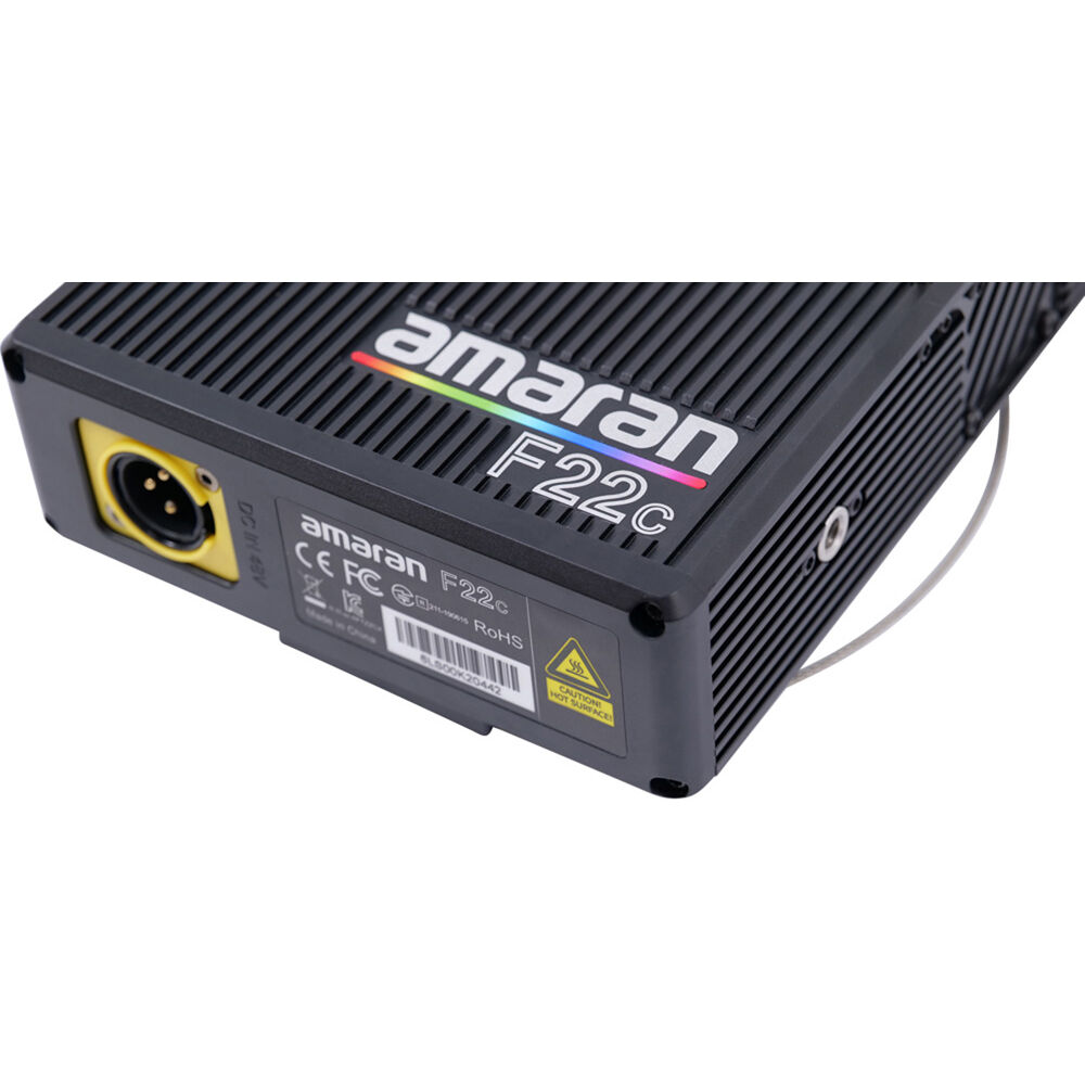 The F22c RGBWW LED Mat from amaran is a powerful, versatile, and flexible LED mat that measures 2 x 2'. It offers outstanding light output and color rendering suitable for a variety of users, from filmmakers to videographers, content creators, and still photographers. Providing 200W of power, it features RGBWW LEDs for complete color control, as well as tunable CCT from 2500K to 7500K, providing endless possibilities for creative lighting selections through 360° HSI control, 46 color gel presets, and 15 unique customizable lighting effects. It has stellar CRI and TLCI scores of 95+ and 97+, and stepless dimming from 0 to 100%. An included folding X-frame stretches the mat to a rigid panel that can be attached directly to a C-stand grip head using the straight Baby Pin adapter, or onto any standard light stand with the included right angle Baby Pin and tilting stand mount. The included foldable softbox has two strengths of diffusion, and a fabric grid that uses an integrated hook-and-loop fabric to instantly turn this flexible mat into an ultrathin soft light that will add beautifully controlled soft light to a scene.