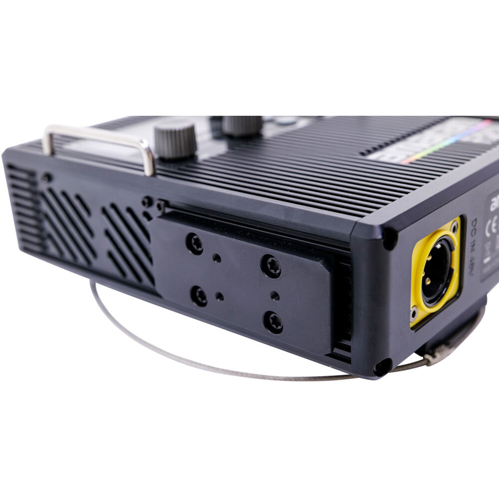 The control box is a multi-voltage AC power supply that features a V-mount battery plate for use with compatible 14.4V, 26V, or 28.8V batteries. Full output can be achieved when using the AC power supply, using batteries allows the F22c to be used at either half or full power, depending on battery strength.