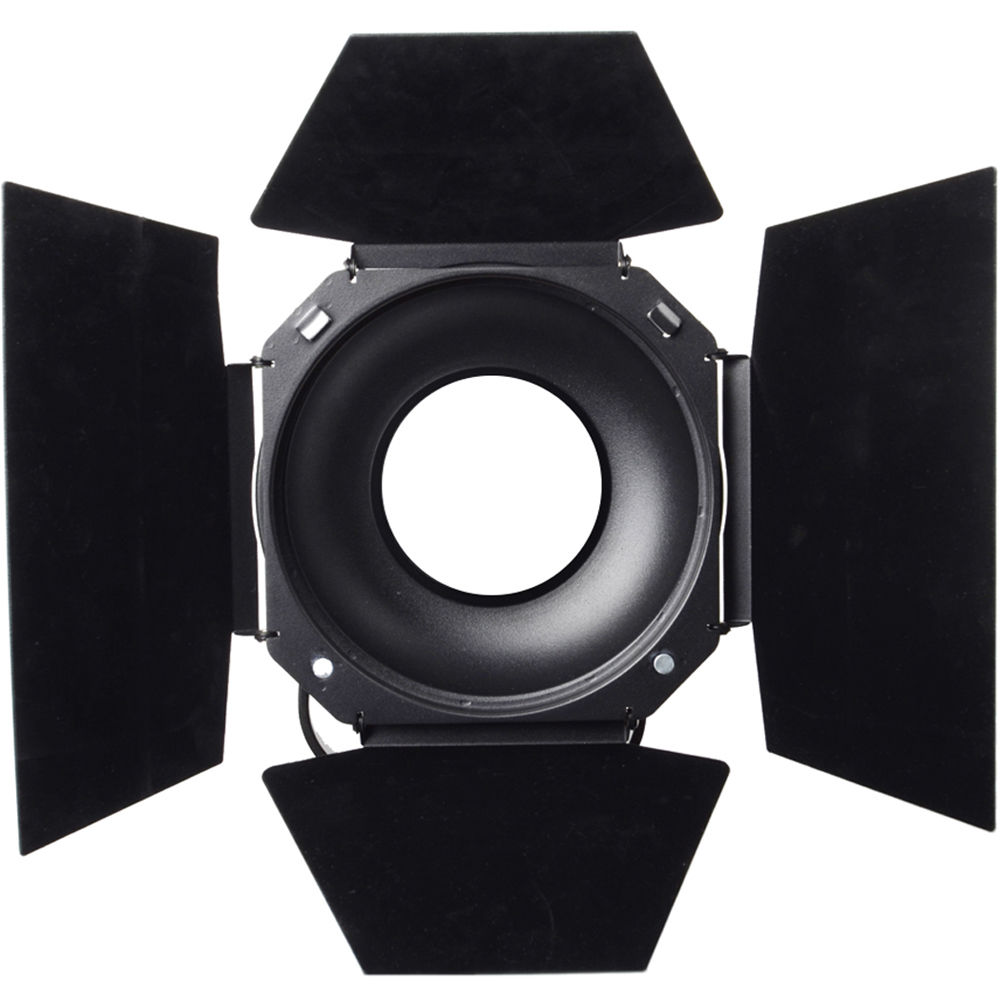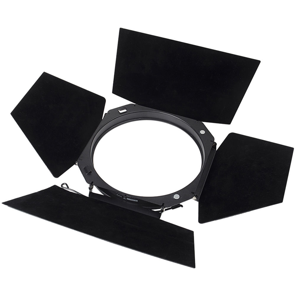 The Barndoors, Grid, and Gel Holder for LS 120d/II and LS 300d/II LED Lights are light modifiers that fit the reflector that comes with all versions of these Aputure LED lights. The 4-way barndoor design allows for one to four of the leaves to be swung into the light's beam to illuminate areas that you want while keeping light from areas where you don't want it. The 30-degree grid narrows the beam spread. The barndoors also include a magnetic gel holder that allows filmmakers to easily add color to their lights' output.