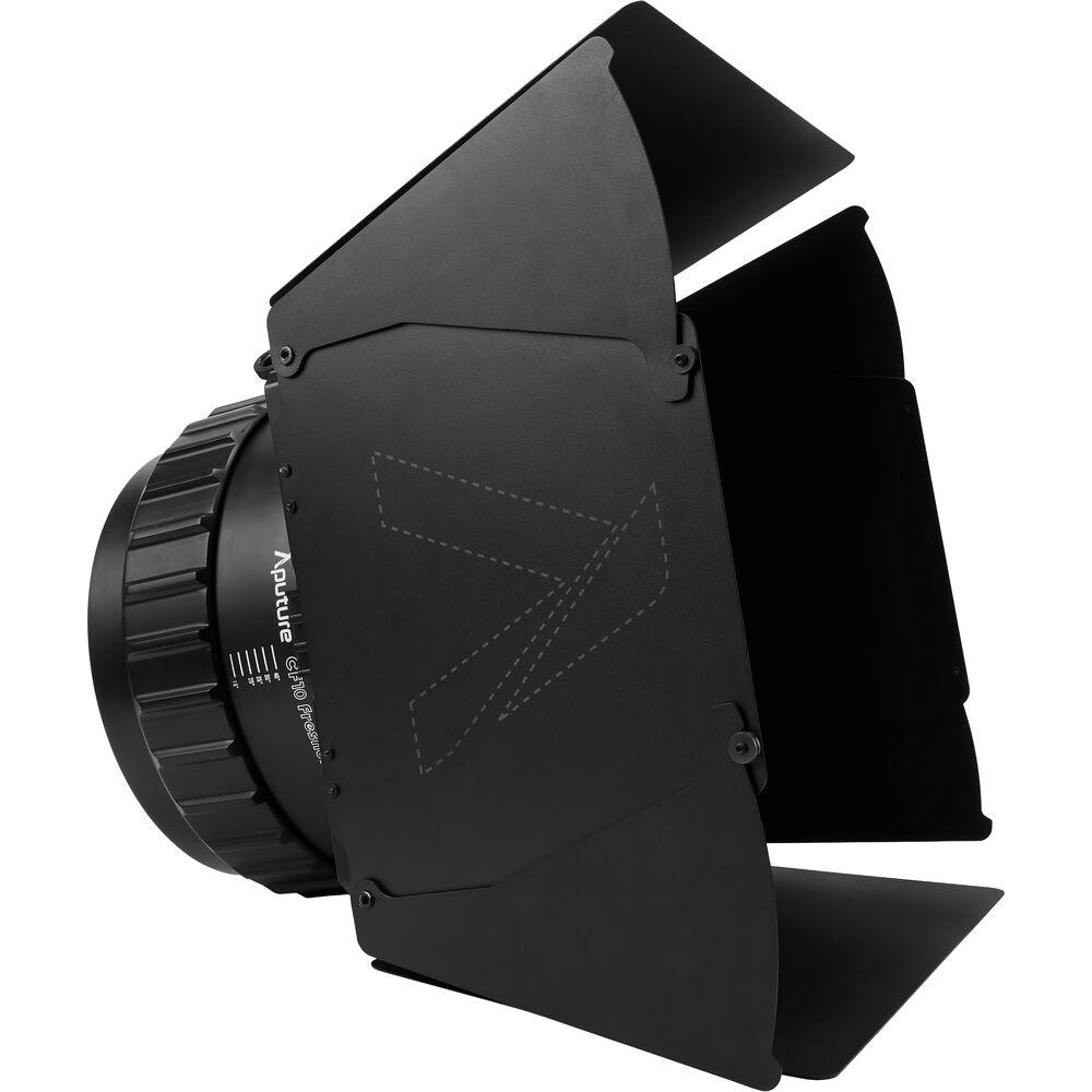 Optimized for Aputure's separately available STORM 700x LED fixture, this CF10 Fresnel & Barndoors Kit combines a compact Fresnel with a 10" diameter lens, 8-leaf barndoors, and a convenient soft carry case. The CF10 Fresnel intensifies the STORM 700x's output by up to two times, reaching up to 56,200 lux at 5600K. It offers a variable beam spread from a 15° spot to a 40° flood with smooth falloff from the center to the edge while maintaining a compact profile.