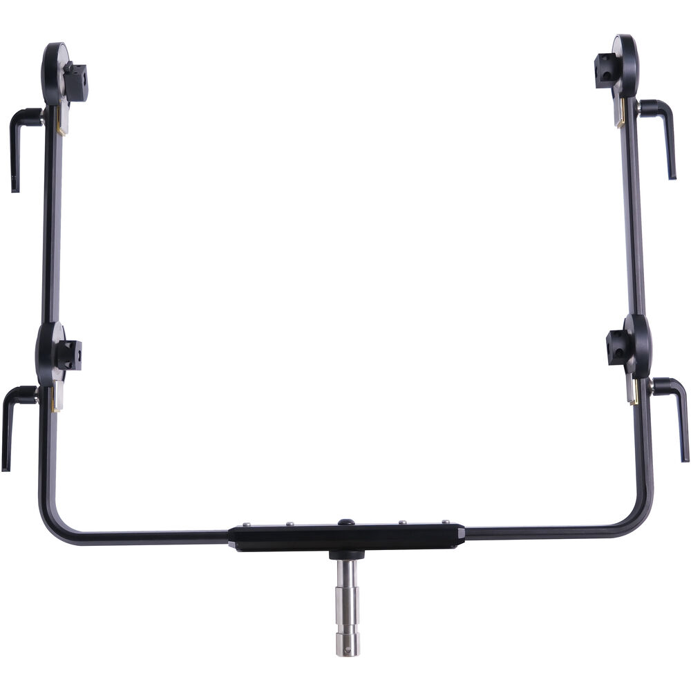 Designed for studio use and professional applications, this Aputure Dual Head Yoke allows you to mount mount two Nova P600c lamp heads onto a single yoke, providing the equivalent surface area of a 2 x 2' light fixture. Both lamp heads feature independent 360° tilt adjustment so you can achieve a wider spread of light or a high-intensity push in a single direction. By stacking the two units and utilizing vertical space, this dual head yoke conserves valuable space on set and allows you to consolidate stands for fast-paced shoots or to minimize rigging for long-term installations.