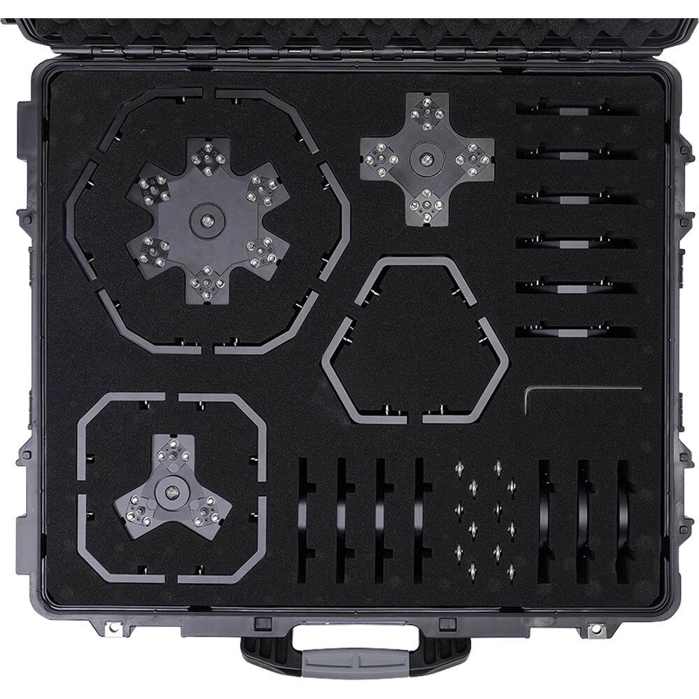 Combine connectors and build custom lighting fixture shapes with the INFINIBAR Multi-Light Shaping Kit from Aputure, which features nine different connectors for joining the PB3, PB6, and PB12 light panels in production-tailored designs. The connectors also feature DC power passthrough, allowing connected INFINIBARs to share the same power supply. The all-metal fixture-building hardware comes in a hard case along with the requisite 1/4-20" eye-bolts and a 5mm hex wrench.