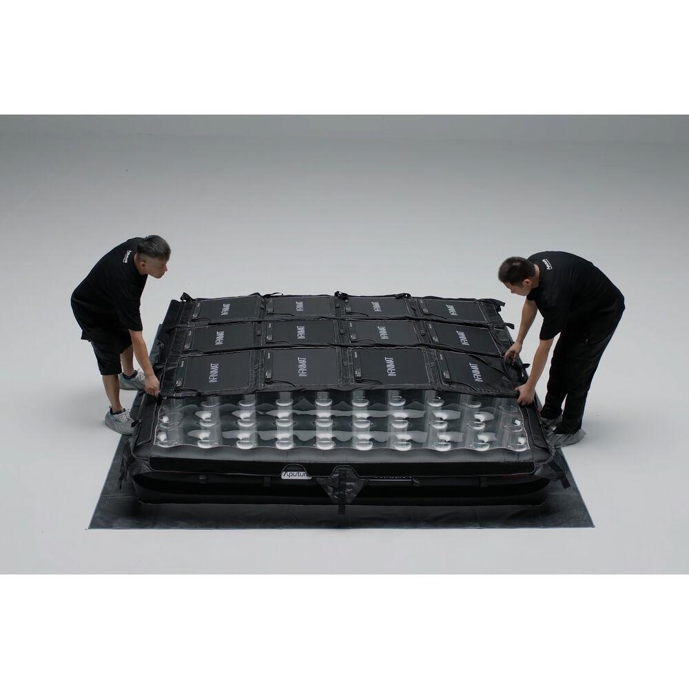 The INFINIMAT LED with Clear Softbox & 1600W Control Box Pack from Aputure includes the 20 x 20' modular, full-color RGBWW LED light mat assembly that offers multiple mounting and rigging methods and is made up of four INFINIMAT 8 x 8' mats. The light pack includes four clear 8 x 8' inflatable softboxes with 1-stop and 2-stop diffusion cloths, light control grids, light control cloths, cushions, light control skirts, safety ropes and head cables.