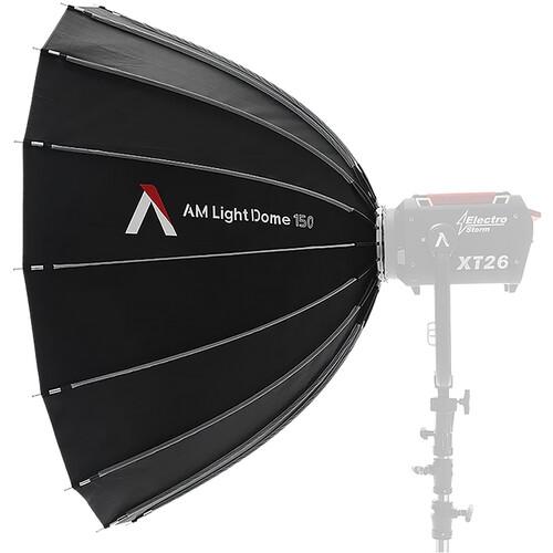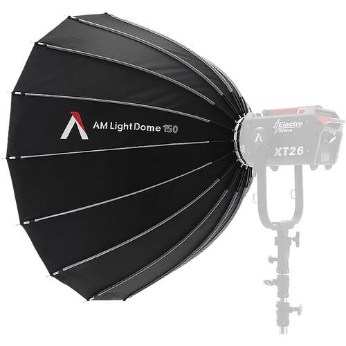With a 5' diameter and circular parabolic design, this Light Dome 150 Softbox from Aputure features the brand's Aputure mount for compatibility with the Electro Storm series LEDs and the STORM XT52 fixture. The Light Dome 150 enables soft, even illumination, as well as round reflections, which is a hallmark of this shape. The Light Dome 150 is great for portraits, interviews, fashion, and other scenarios, while providing quick setup for a more efficient workflow. The two included 1.5- and 2.5-stop diffusers offer different ways to manipulate the light, while the supplied 50° grid provides directional control to enable selective lighting and control spill. Aputure's supplied carry bag facilitates storage and transportation.
