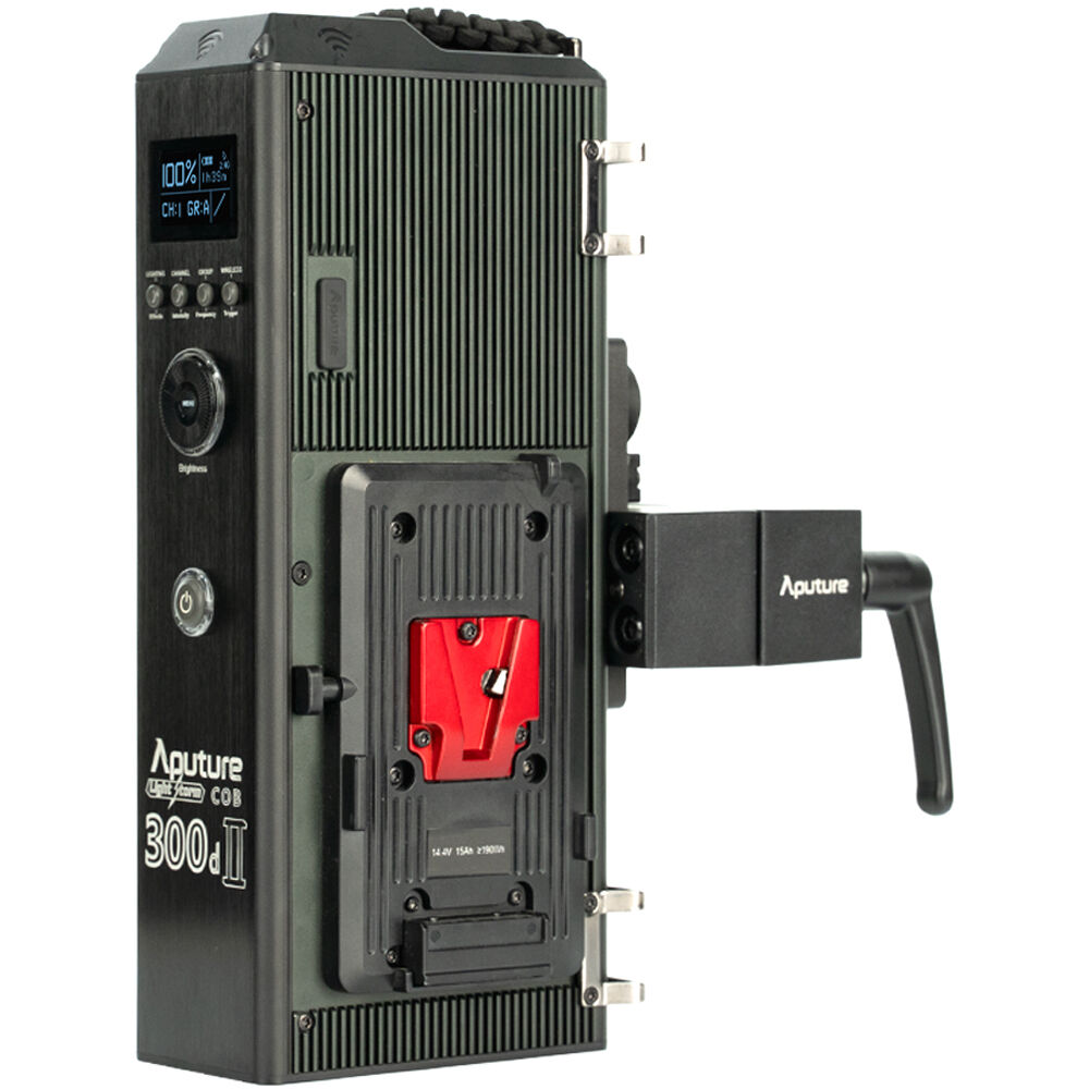 The control box is completely redesigned. By utilizing Aputure's fan‐less heat sink design, the 300d Mark II's All-in-One control box is now completely silent. Composed of a durable aluminum alloy, with a new concealed antenna and military-grade paracord strap, the control box is ready to withstand the rigors of any film set. The 300d Mark II control box is also the first product to utilize Aputure's quick release plate and clamp system, allowing you to firmly secure it on any stand, truss, or speed rail.