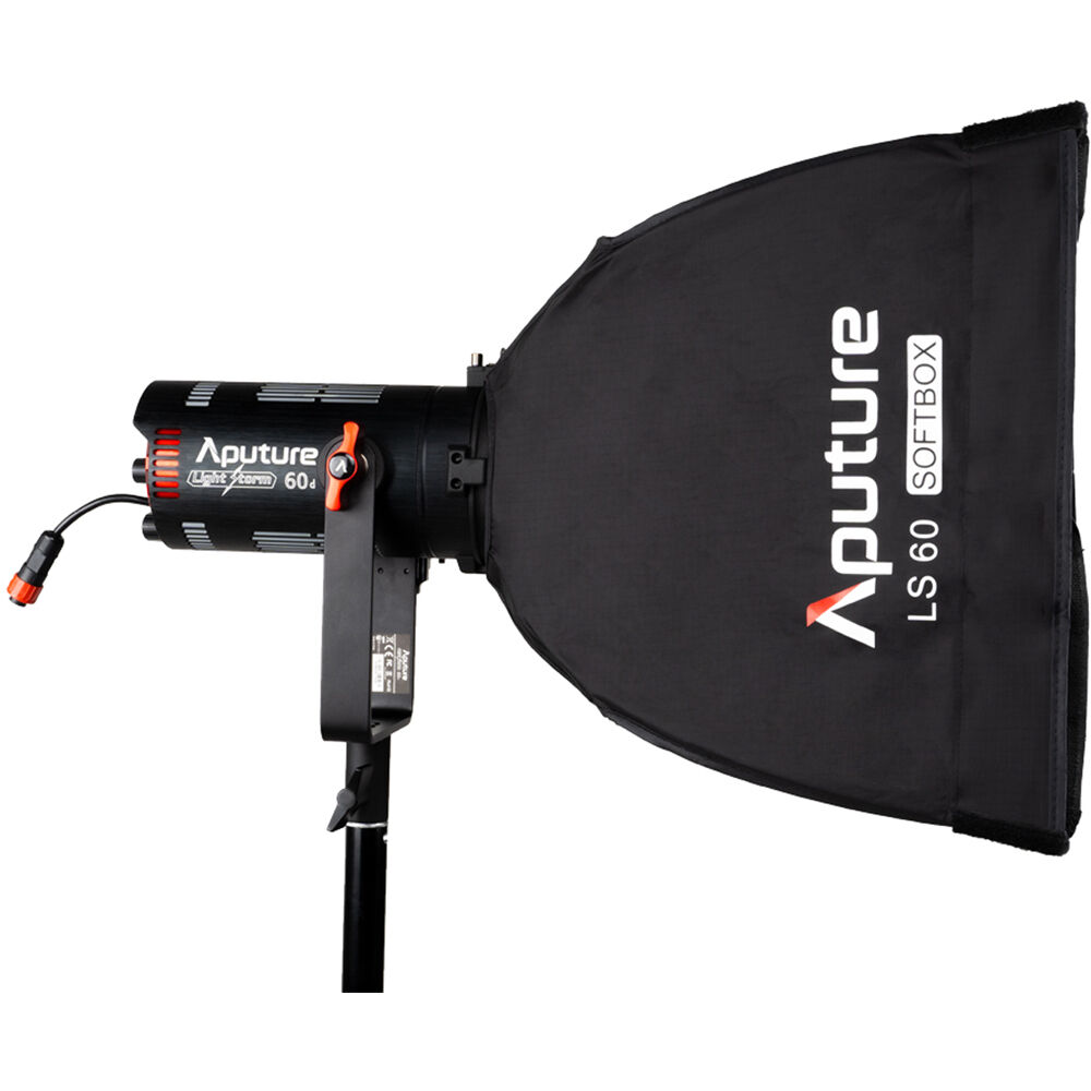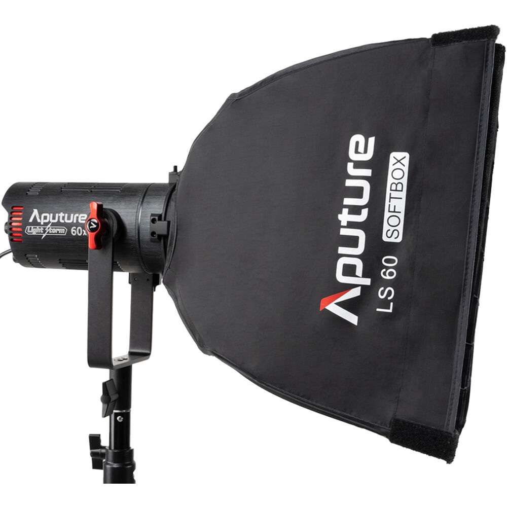 The LS60 Softbox from Aputure is a softbox measuring 14 x 14". It is compatible with the LS 60d and 60x LED lights. It can be used as a key light or back light and can be tucked into corners and locations where larger softboxes are not able to fit. A useful solution for corporate and broadcast work, the softbox creates a soft and flattering light with open shadows. The softbox comes with 1.5- and 2.5-stop diffusers, plus a 45° fabric grid.