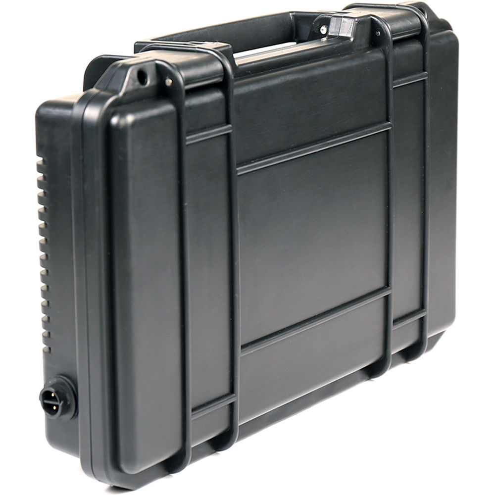 The included case holds the four MC fixtures and can be used to wirelessly charge the lights using the included power supply. The case also incorporates two 5 VDC USB power ports for charging mobile accessories.