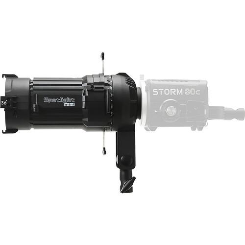 Featuring a Mini ProLock mount, this Spotlight Mini 36° Lens Kit from Aputure is a compact ellipsoidal projector specifically designed for the brand's separately available STORM 80c. With a rotating barrel that allows for orientation of the integrated 4-leaf cutter, this Spotlight Mini version comes with a 36° interchangeable lens. Versatile and suitable for a variety of setups, this kit also includes a gobo holder and 10 M-sized gobos for unique light projection shapes. The Spotlight Mini has a durable all-metal housing and this kit is packed in a case to store and protect the housing, lens, and included accessories.