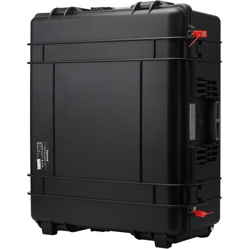 Safely transport your STORM 80c 3-Light Kit in this Wheeled Hard Case from Aputure. The waterproof and dustproof hard-shell case features a foam insert that is laser cut to cradle each of the lights and accessories in the kit. This case has reinforced padlock holes and a retractable handle, top handle, and wheels for easy transport.