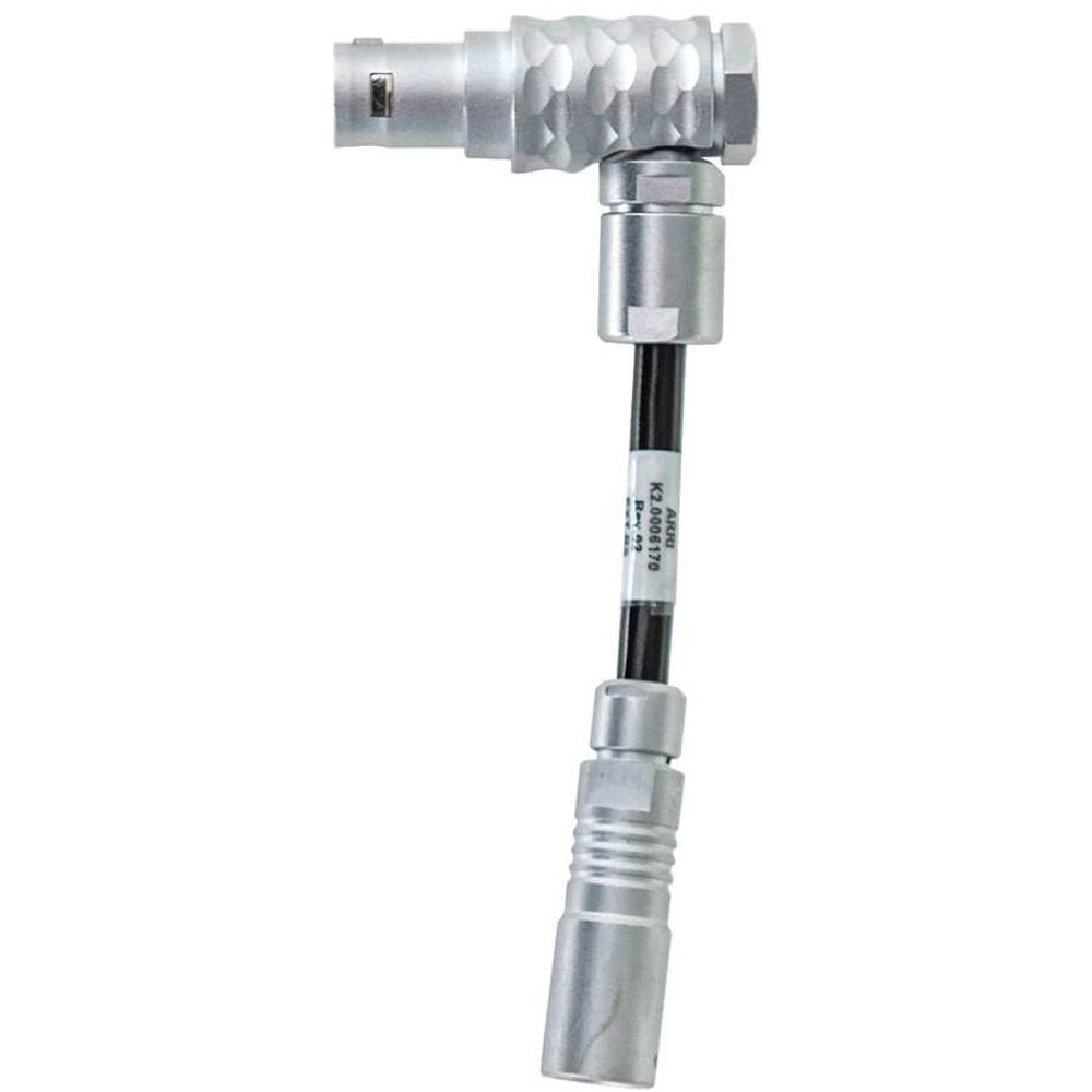 Use the ARRI EXT-RS Adapter to convert the ALEXA Mini's external sync port into a 3-pin RS connection. This right-angle to straight adapter can be used with a compatible accessory to provide RUN/STOP capability.