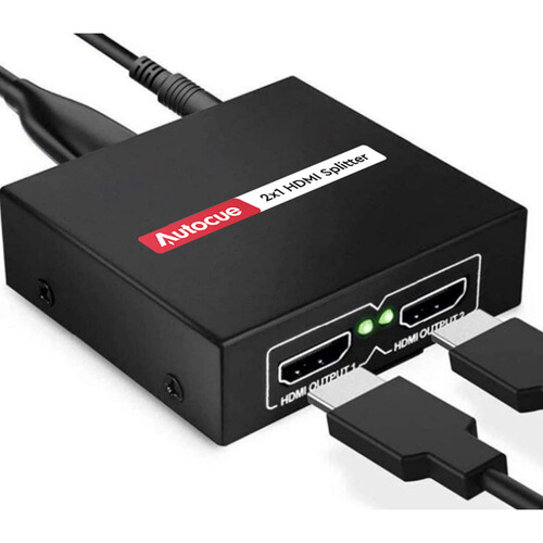 This Autocue 1x2 HDMI Splitter divides a single HDMI signal between two teleprompters with HDMI ports. Easily set up the splitter in your studio thanks to the included HDMI cable. Power is delivered to the splitter via USB input using the included USB power cable.