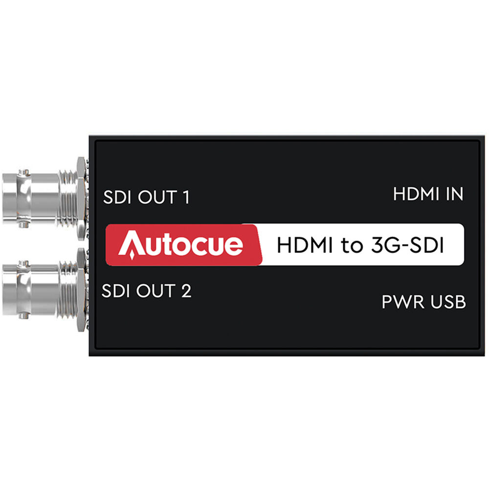 Convert the HDMI signal from your PC to an SDI signal for your Pioneer series teleprompter to display using this HDMI to 3G/SD/HD-SDI Converter from Autocue. Dual BNC outputs can deliver either 3G-, SD-, or HD-SDI signals to up to two teleprompters. The converter is powered via USB with the included power cable.