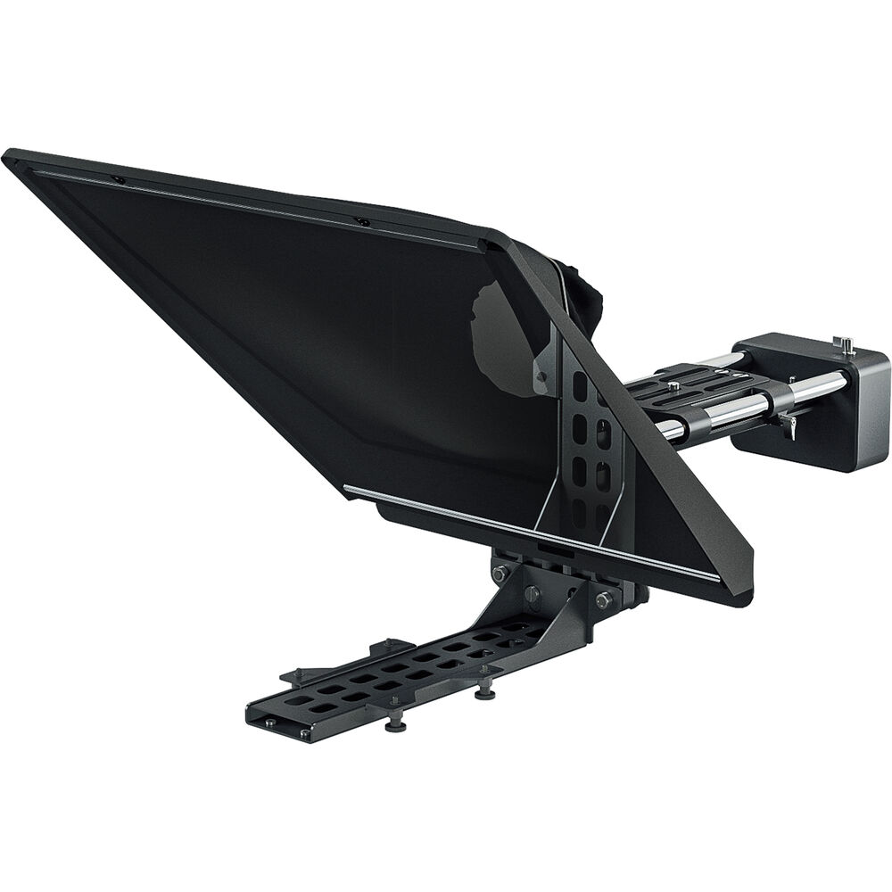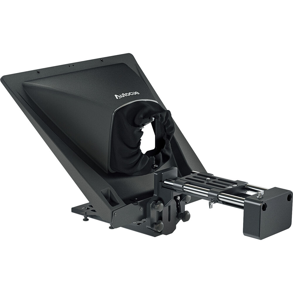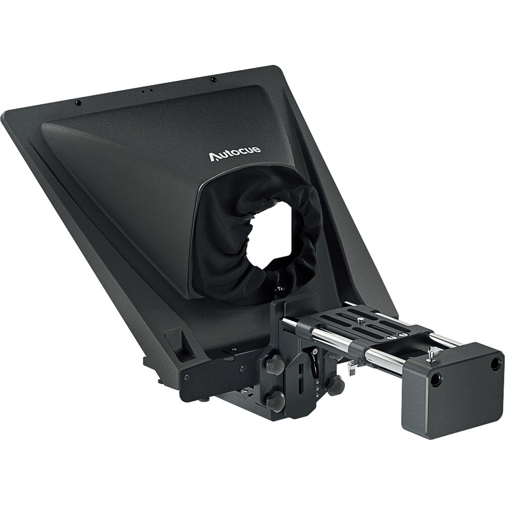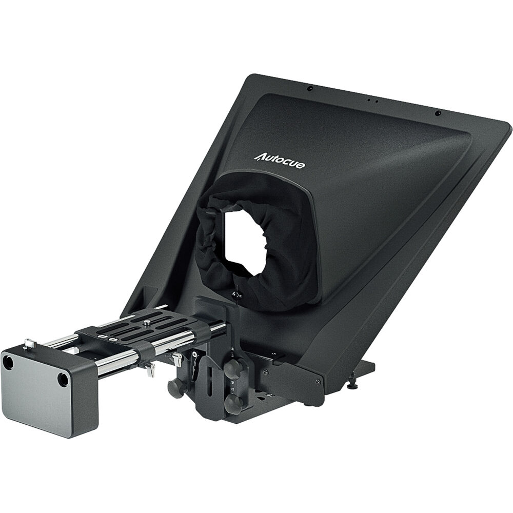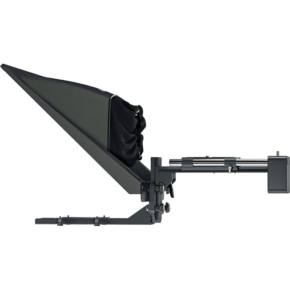 Secure your recording device of choice to the camera carriage with the 1/4"-20 and 3/8"-16 screws and adjust the base to lens center height from 2 to 5.5". The 19mm rod ports allow you to integrate the included 17.7" studio rods. The medium-sized hood is constructed from composite material and has a fabric lens seal to ensure maximum compatibility. The 70/30 beamsplitter glass makes for a clear, legible reflection of your script.