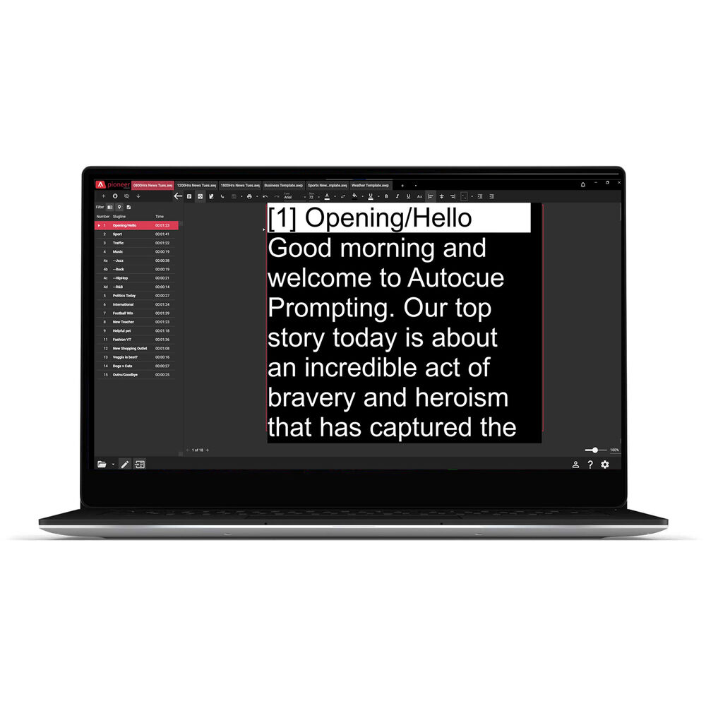 This Autocue Pioneer Teleprompting 1-Year Software License provides you with a 1-year subscription to professional-grade prompting control software.Manually import, write, and save files from various platforms. Manage run order and create shortcuts and bookmarks to better facilitate your live broadcast flow. The software features unlimited control integration and outputs from HDMI, NDI, and even IP sources to iPads and IP converters. The software integrates into your studio setup by simply plugging the USB stick into your Windows OS computer.