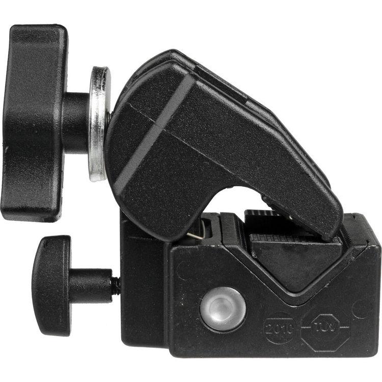 This black-finished C1575B Super Clamp from Avenger uses its threaded T-knob to create a strong bite on rigging points up to 2.6". Built-in 5/8" and 1/4"-20 receivers accept various kinds of lights and accessories.