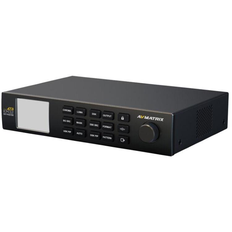 The 4K HDMI Chroma Key Master from AVMATRIX helps you facilitate efficient chroma keying in live production applications. The device features three HDMI inputs for foreground, background, and DSK key sources, as well as four HDMI outputs for PGM, clean PGM, matte, and AUX sources. These ports help deliver 4K60 video signals seamlessly. The keyer can handle both green and blue screens, along with auto and manual chroma keying options.