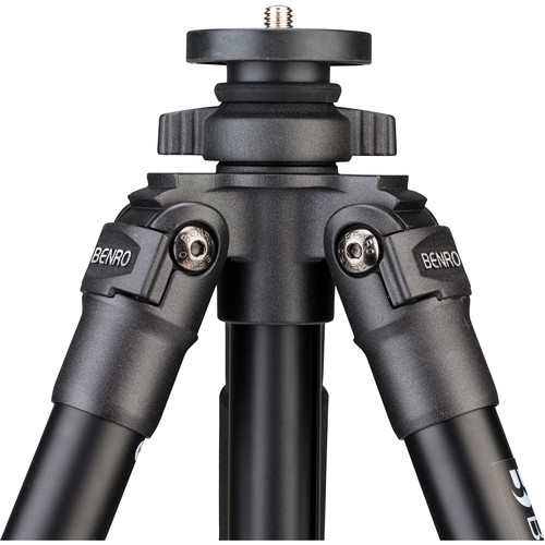 The 4.3 lb Adventure Aluminum Tripod with HD1A Pan and Tilt Head from Benro is an all-purpose four-section support with flip leg locks that open, so you can extend the legs along with the rapid center column to a maximum height of 60.4". The tripod's legs splay out to a second lower position of 15.7" for macro or close-up photography.