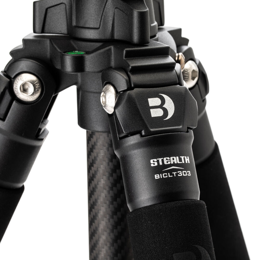 The ergonomic, rubber-covered twist-lock joints are dust resistant and oversized, so they easily fit the hand, even while wearing gloves when the cold weather hits. Engineered for stability at any angle, the three-stop adjustable leg locks and independent leg spread provide lower angles and maximum stability. The adjustable legs and bubble level allow easy and accurate leveling on uneven terrain. The oversized center column lock makes it easy to secure the short, grooved column in any vertical position and even allows the camera to be positioned as close to the ground as possible. Additionally, this 3-Series leg set folds down to an impressively compact 25" for easy transport and storage.