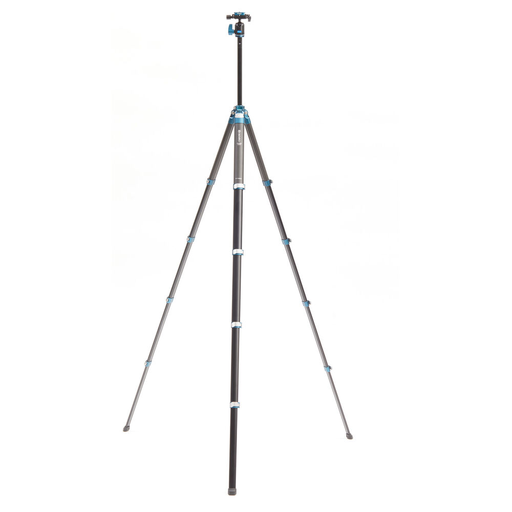 The CyanBird Carbon Fiber / Aluminum Tripod with N00P Ball Head from Benro is a travel-friendly tripod that can go wherever your creativity takes you. Boasting a sleek ocean blue design, this lightweight and versatile tripod is perfect for photo, video, and content creation. It has a load capacity of 8.82 lb and extends to a height of 52", yet easily folds down to just 7", making it a great fit for any backpack or camera bag. The lightweight hybrid legs feature a flatter shape than traditional round legs to provide rigidity while reducing size. The top leg segment of this hybrid tripod design is made of carbon fiber, the lower four segments are made of aluminum.