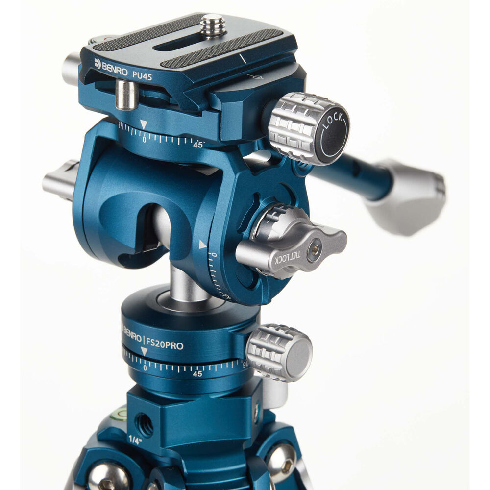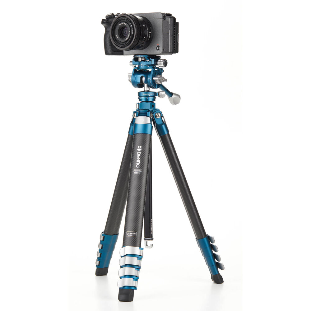 The CyanBird Carbon Fiber Tripod with FS20PRO 2-in-1 Pan Head from Benro is a travel-friendly tripod that can go wherever your creativity takes you. Boasting a sleek ocean blue design, this lightweight and versatile tripod is perfect for photo, video, and content creation. It has a load capacity of 9.92 lb and extends to a height of 50.8", yet easily folds down to just 7.2", making it a great fit for any backpack or camera bag. The lightweight carbon fiber legs feature a flatter shape than traditional round legs to provide rigidity while reducing size.