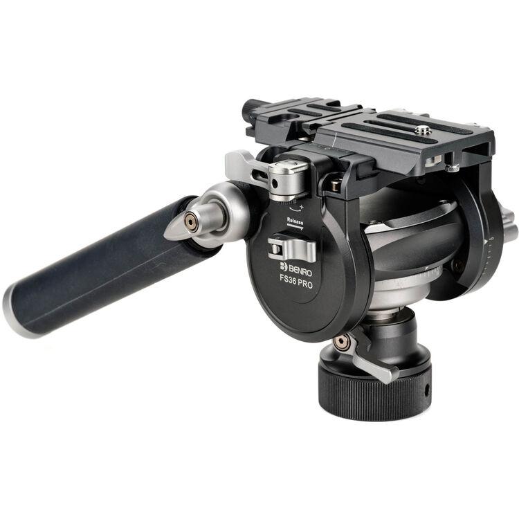 The FS36PRO Inverted Ball Head Video Head from Benro provides smooth, precise moves for camera rigs up to 13.2 lb. It features spring-loaded counterbalance, easy leveling, a side-load plate that converts from 501- to Arca-type, and all controls located on the left-hand side. The handle can be attached to either side of the head.