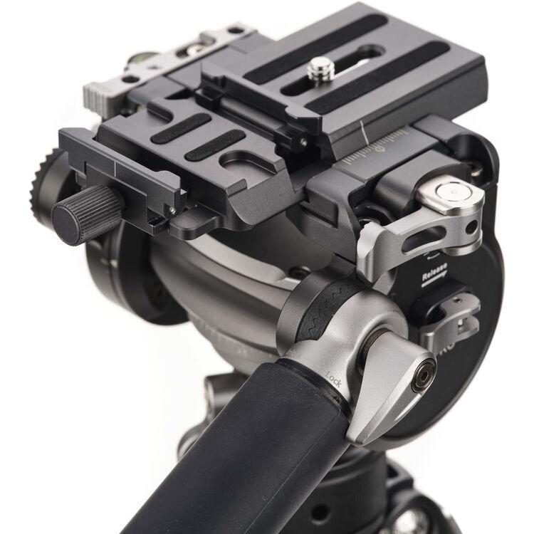 The included 501-type, side-loading quick release plate has a tab that switches it to Arca-type compatibility, letting you use the same plate for both video and photography camera rigs.