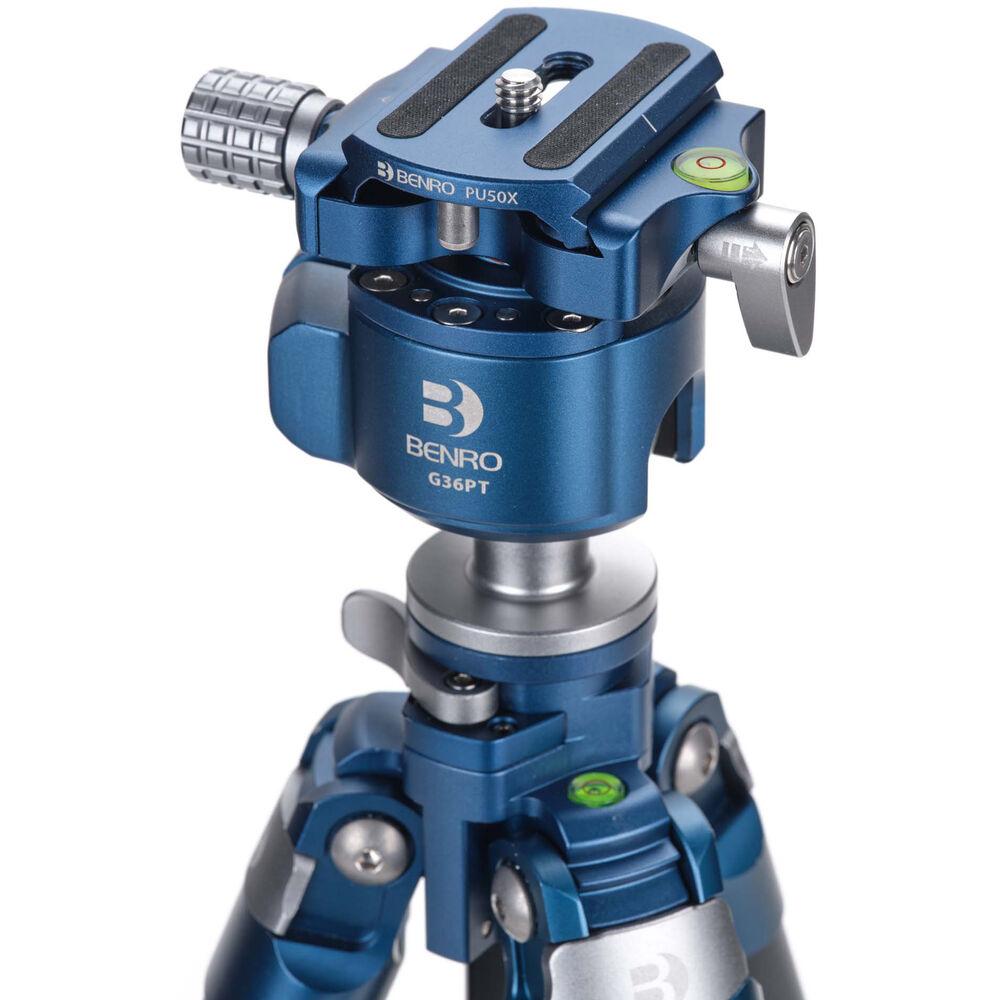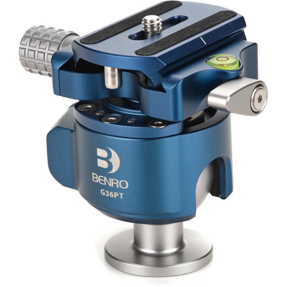 Offering stability and versatility in a compact form factor, the G36PT Inverted Ball Head from Benro keeps a low profile while handling equipment of up to 44 lb. The inverted ball head design results in a smaller footprint and a lower center of gravity, making the head more travel-friendly while improving balance for heavier setups. CNC-machined with adjustable tension controls for smooth, precise movements and adjustments, the head provides 360° of panoramic rotation and features a 90° slot for easy vertical orientation and a bubble level for quick and accurate leveling. The head's quick release plate is Arca-type compatible with a 1/4"-20 screw and boasts a pull-and-twist locking system for secure attachment.