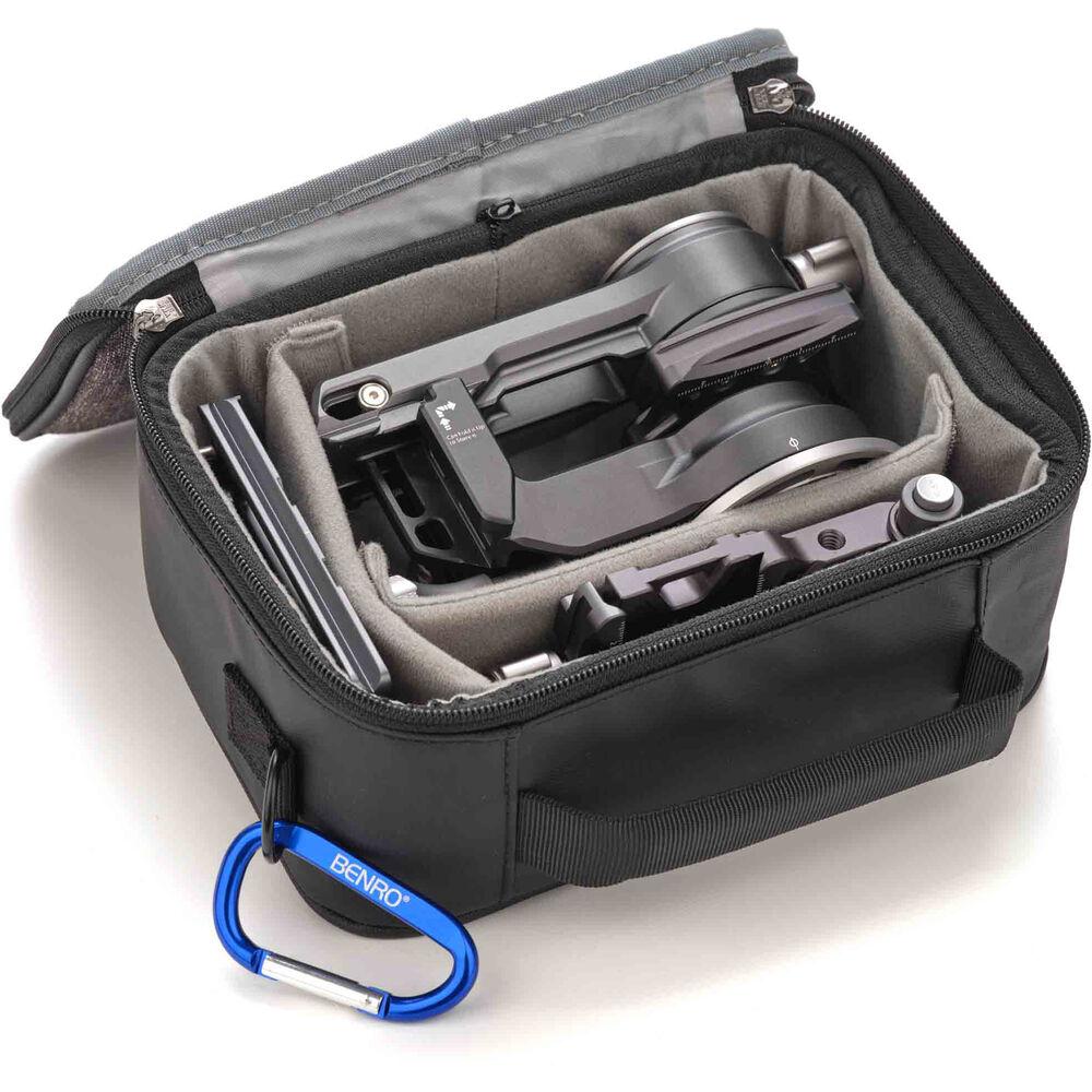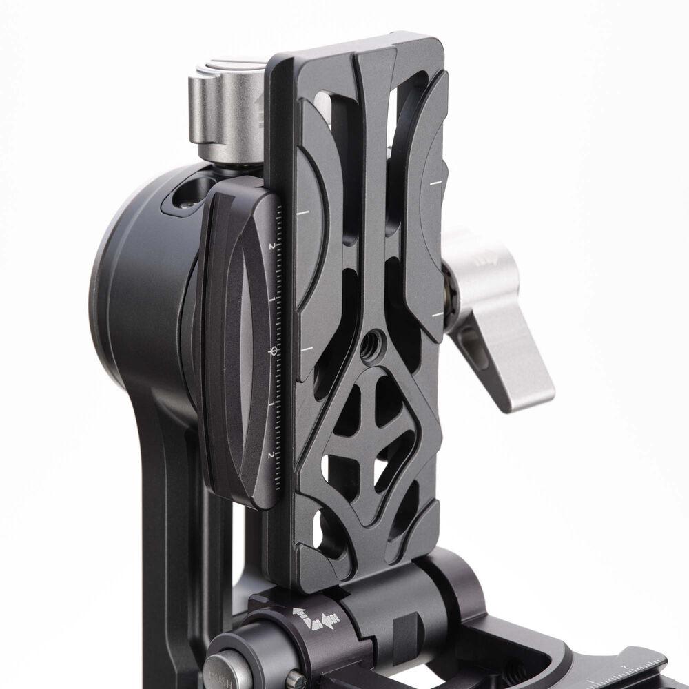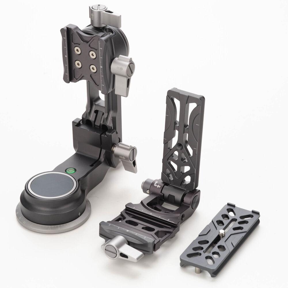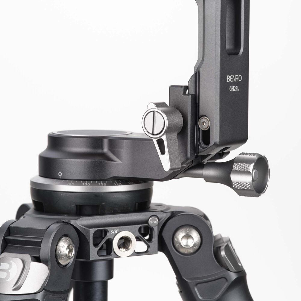 The GH2FL Folding Gimbal Head from Benro is a full-featured gimbal head featuring a unique folding design for easy storage and transport. Suitable for use with camera bodies and large lenses, it has a load capacity of 22 lb. The rotating arm features an Arca-type quick release receiver and can be folded against the tripod to make the combination of head and leg set extremely compact. In addition, the rotating arm can be removed and used separately as an L-bracket for Arca-type compatible tripod heads. With the rotating arm removed, long lenses can be mounted directly to the arm mount pivot joint.