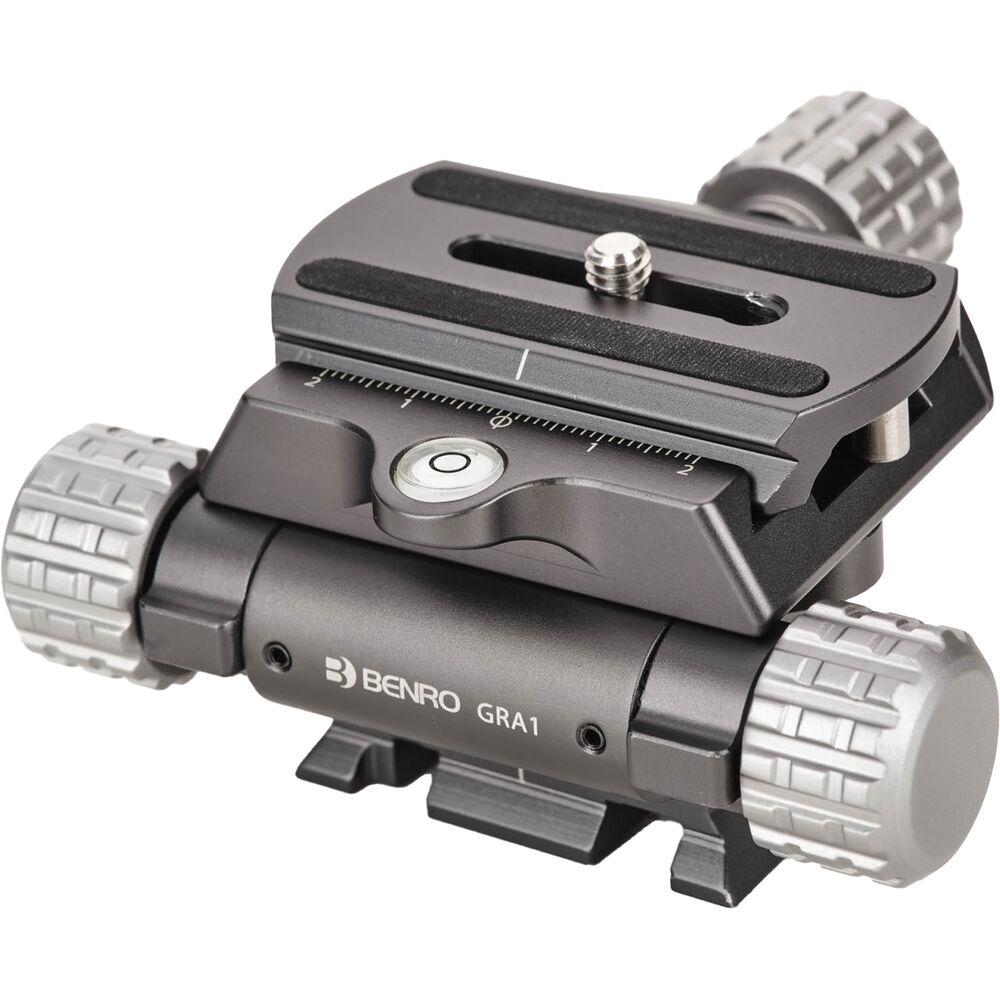 Whether you're capturing landscapes, architecture, or working in the studio, the Benro GRA1 Geared Pan Rotation Adapter helps achieve smooth, panoramic shots with precise adjustments. Its brass internal gearing offers ultra-smooth, controlled rotation along the 360° pan axis. The pull-and-twist Arca-style clamp with laser-etched marked scale provides a clear reference for repeatable movements, useful for panoramas or multi-shot composites. This compact, durable, and lightweight design supports a variety of equipment. You can mount it to any Arca-style or 501 clamp as well as to any 1/4"-20 or 3/8"-16 thread.