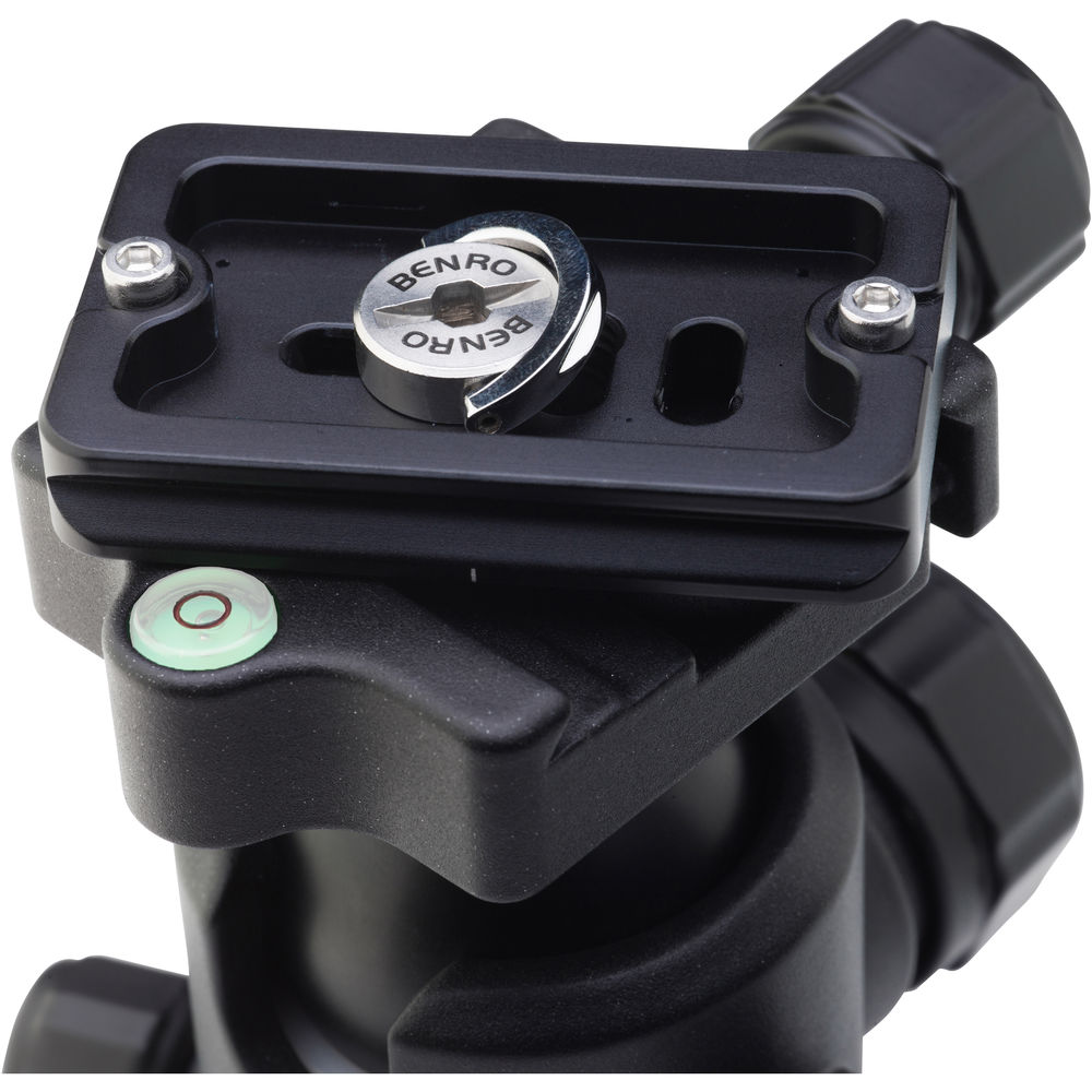 The IB1 Triple Action Ball Head from Benro is an Arca-type compatible head with a load capacity of 17.6 lb. It stands 3.8" high, and weighs 12.8 oz. There are separate locks for both the ball movement and the 360° panning motion, as well as a friction control knob. A 90° notch makes it easy to switch to portrait orientation. The numbered scale on the head's base allows for easily repeatable pans, and a bull's eye bubble helps ensure they head is level with the horizon.
