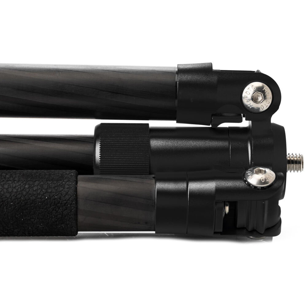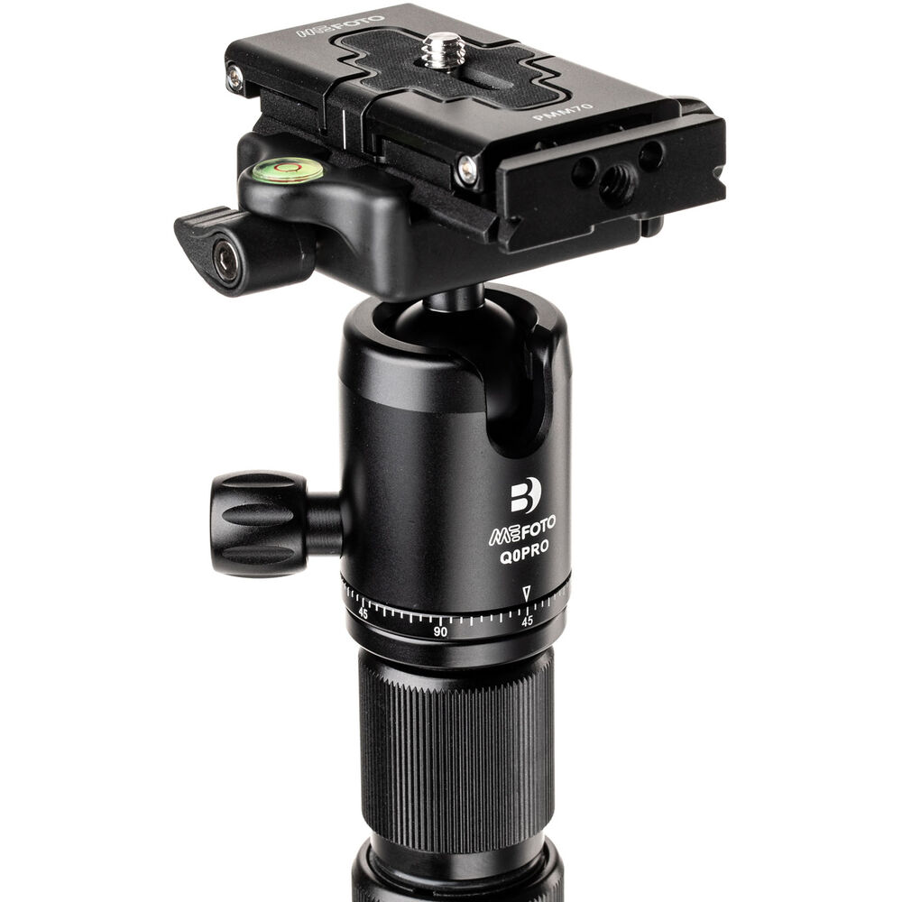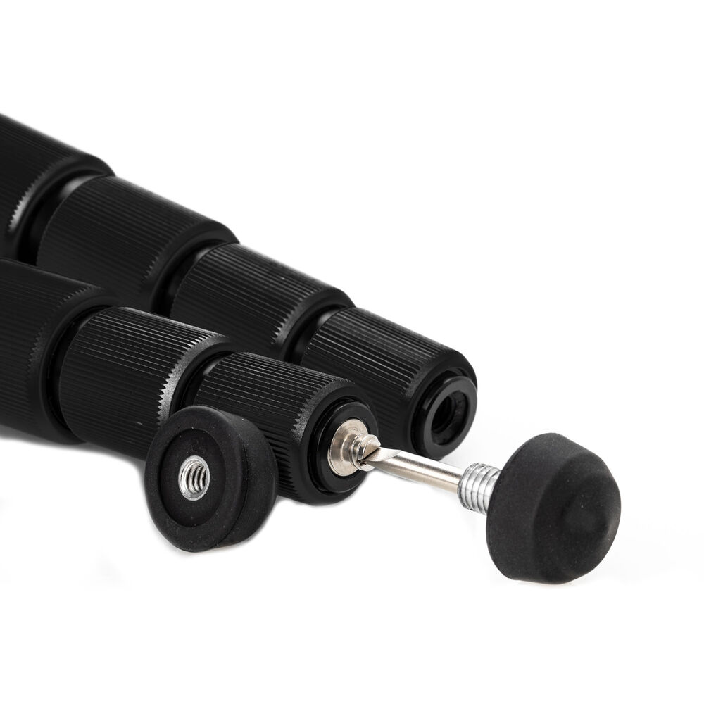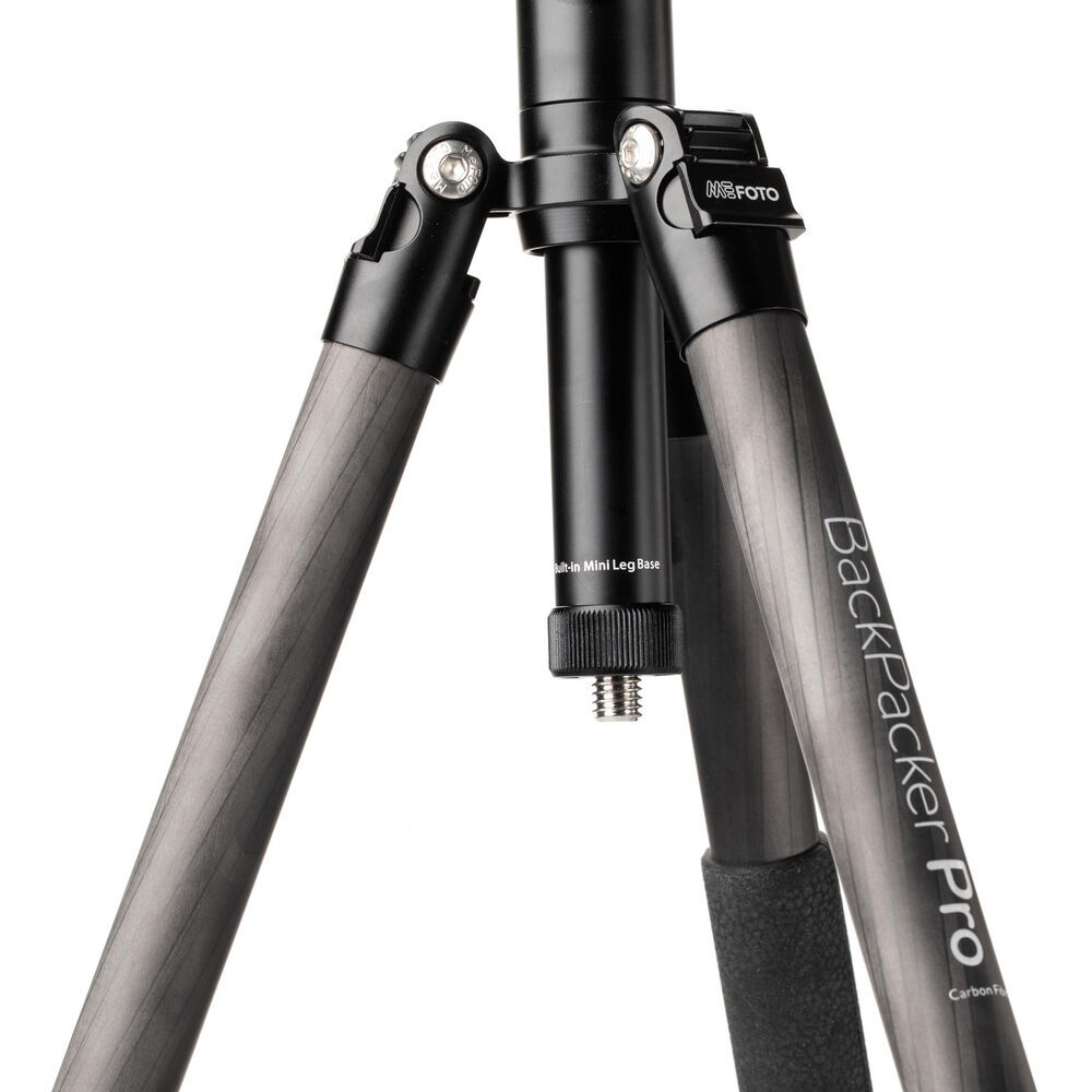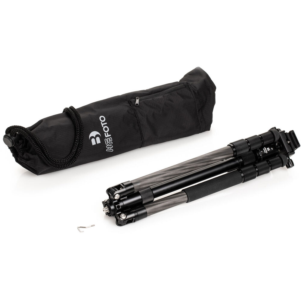 The MeFOTO BackPacker Pro 6-in-1 Carbon Fiber Travel Tripod from Benro is a versatile travel tripod that also acts as a monopod, boom pole, selfie stick, high hat, and tabletop tripod. It has a load capacity of 13.2 lb, making it compatible with compact and video cameras, Action cams, mirrorless cameras, and DSLRs. The included Arca-type ball head includes a PMM70 quick release plate, which folds out to convert into a smartphone clamp with cold shoe accessory mount. This compact tripod has a maximum height of 55.1", yet the legs reverse fold to a compact 21.9", making it easy to carry along whenever and wherever it is needed. Within the tripod's removable feet, you'll find a 3/8"-16 to 1/4"-20 adapter stud and an accompanying straight screwdriver to use with the stud, which allows the included phone PMM70 clip/camera plate to be attached to the tripod leg to create a selfie stick. The center column can be removed and combined with a removable leg to make a 56.9" monopod for situations where a tripod may be too bulky or slow, like when shooting wildlife or sports. The center column also conceals a compact folding tabletop leg set that can be combined with the ball head to form a tabletop tripod. The lightweight carbon fiber legs have independent leg spread and open out to three locking positions for easy leveling, even on uneven terrain. Each leg features a removable rubber foot that conceals a tool or adapter, so all of the tripod set components are always handy.