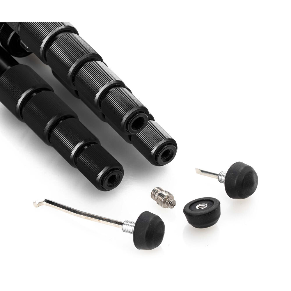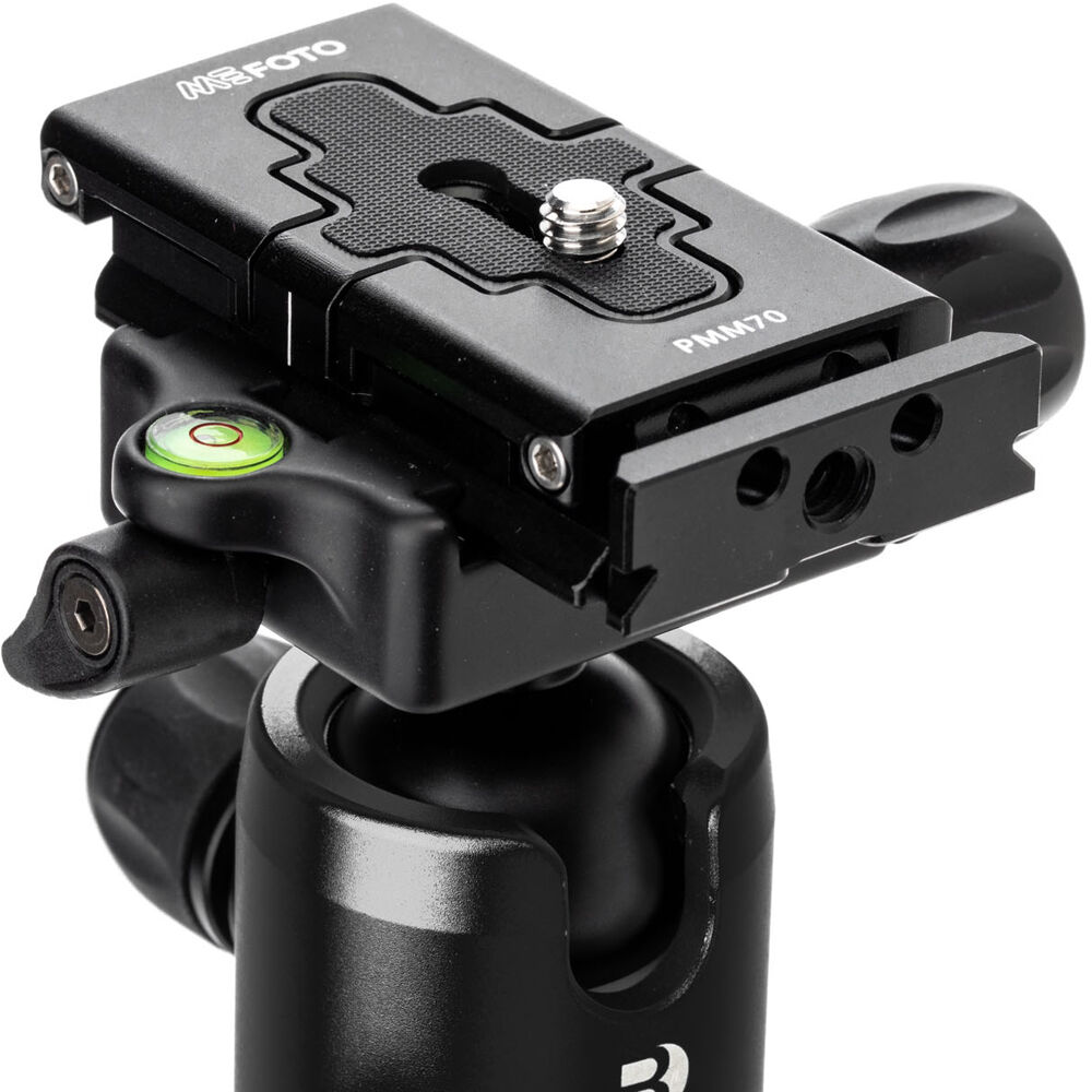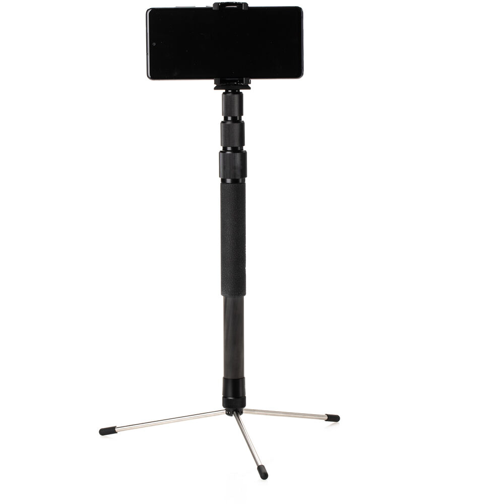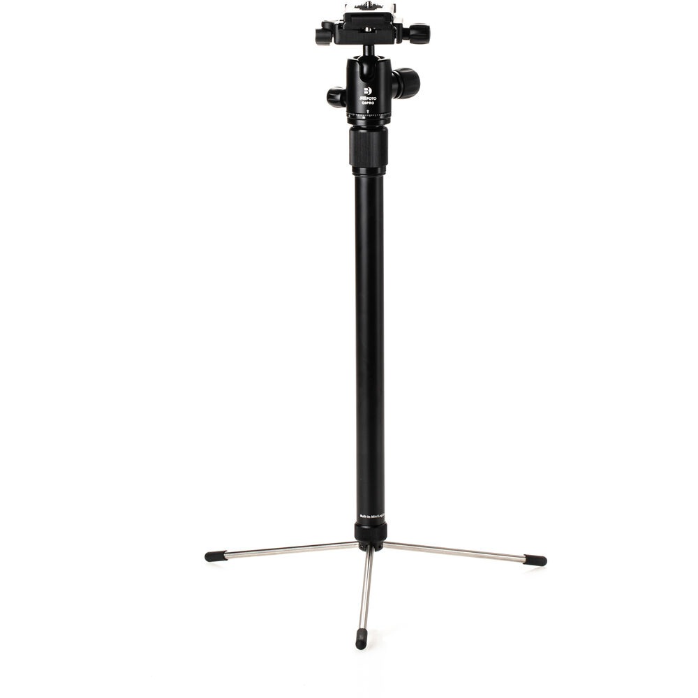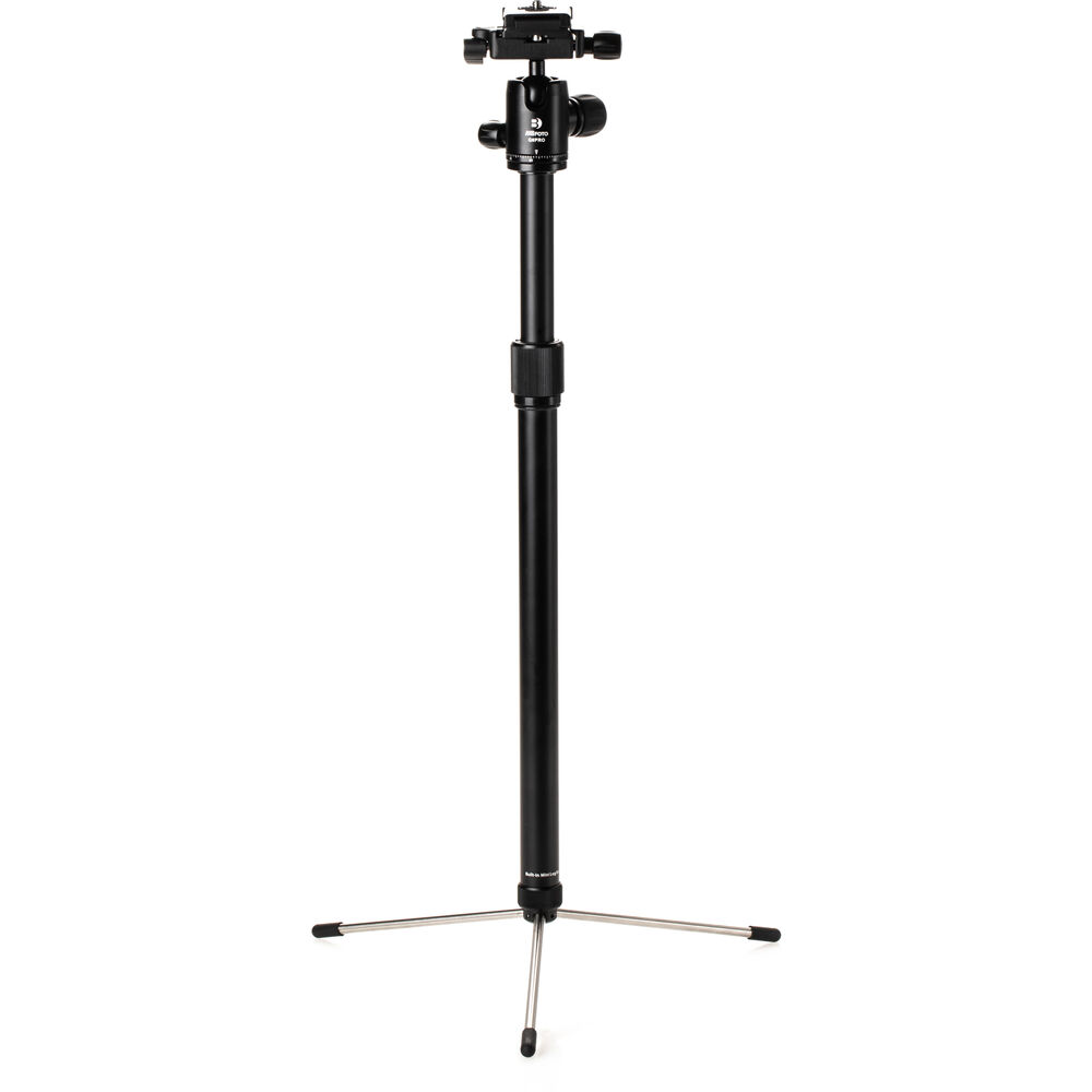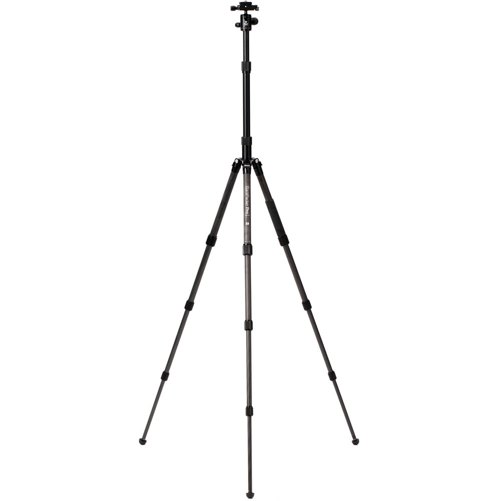 The MeFOTO BackPacker Pro 6-in-1 Carbon Fiber Travel Tripod from Benro is a versatile travel tripod that also acts as a monopod, boom pole, selfie stick, high hat, and tabletop tripod. It has a load capacity of 13.2 lb, making it compatible with compact and video cameras, Action cams, mirrorless cameras, and DSLRs. The included Arca-type ball head includes a PMM70 quick release plate, which folds out to convert into a smartphone clamp with cold shoe accessory mount. This compact tripod has a maximum height of 55.1", yet the legs reverse fold to a compact 21.9", making it easy to carry along whenever and wherever it is needed. Within the tripod's removable feet, you'll find a 3/8"-16 to 1/4"-20 adapter stud and an accompanying straight screwdriver to use with the stud, which allows the included phone PMM70 clip/camera plate to be attached to the tripod leg to create a selfie stick. The center column can be removed and combined with a removable leg to make a 56.9" monopod for situations where a tripod may be too bulky or slow, like when shooting wildlife or sports. The center column also conceals a compact folding tabletop leg set that can be combined with the ball head to form a tabletop tripod. The lightweight carbon fiber legs have independent leg spread and open out to three locking positions for easy leveling, even on uneven terrain. Each leg features a removable rubber foot that conceals a tool or adapter, so all of the tripod set components are always handy.