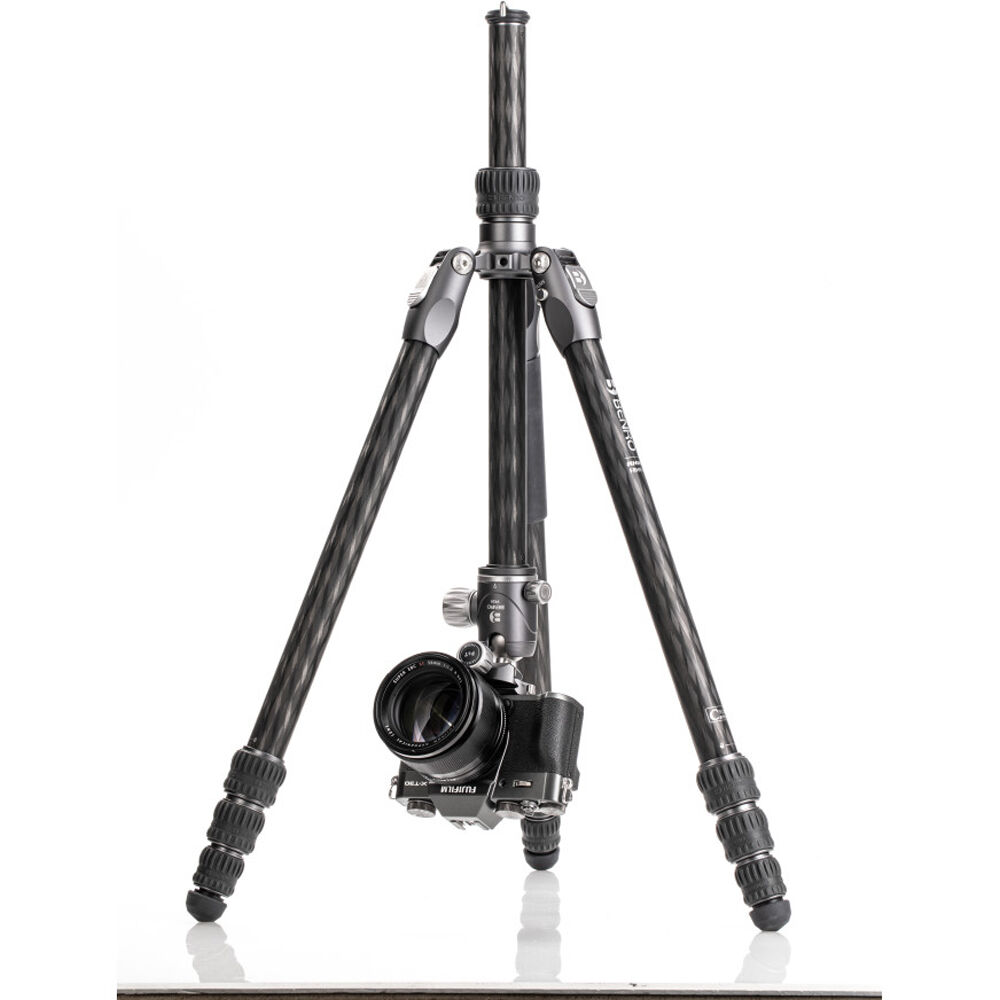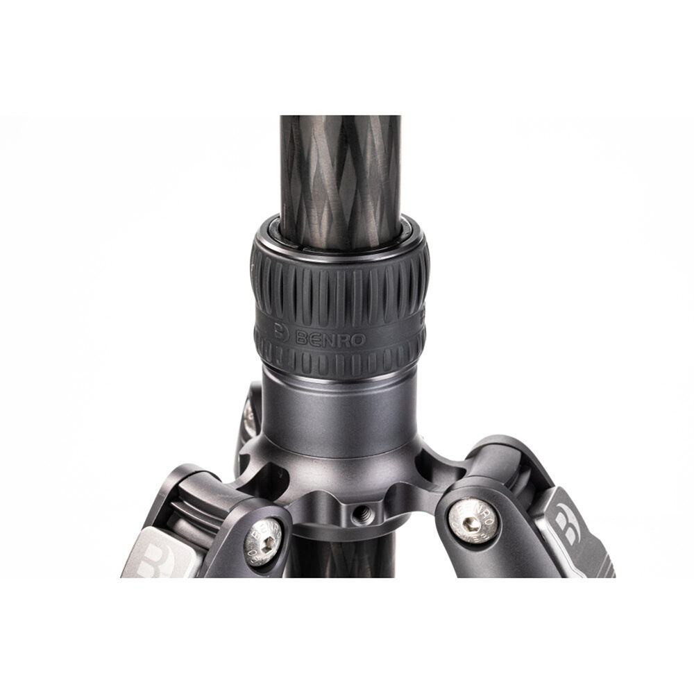 The Rhino One Series Travel Tripod with VX20 Head from Benro combines a lightweight and versatile carbon fiber leg set with a dual panoramic ball head. With a reverse folding design, it is extremely portable and is equally suited for the studio, outdoors, and travel. The legs offer independent spread and three locking positions and incorporate automatic leg angle adjustment for fast and sure setup. The legs are reversible for inverted shooting and storage, and the aluminum leg spider features three 1/4"-20 accessory mounts for extension arms, monitors, lights, and more. For shoots where even a lightweight tripod may be more than required, the center column attaches to a removable leg to create a full-sized monopod.