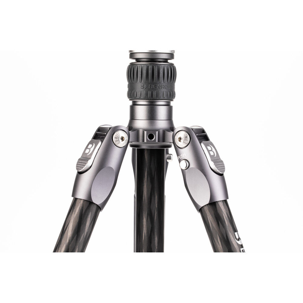 The Rhino Two Series Travel Tripod with VX25 Head from Benro combines a lightweight and versatile carbon fiber leg set with a dual panoramic ball head. With a reverse folding design, it is extremely portable and is equally suited for the studio, outdoors, and travel. The legs offer independent spread and three locking positions and incorporate automatic leg angle adjustment for fast and sure setup. The legs are reversible for inverted shooting and storage, and the aluminum leg spider features three 1/4"-20 accessory mounts for extension arms, monitors, lights, and more. For shoots where even a lightweight tripod may be more than required, the center column attaches to a removable leg to create a full-sized monopod.