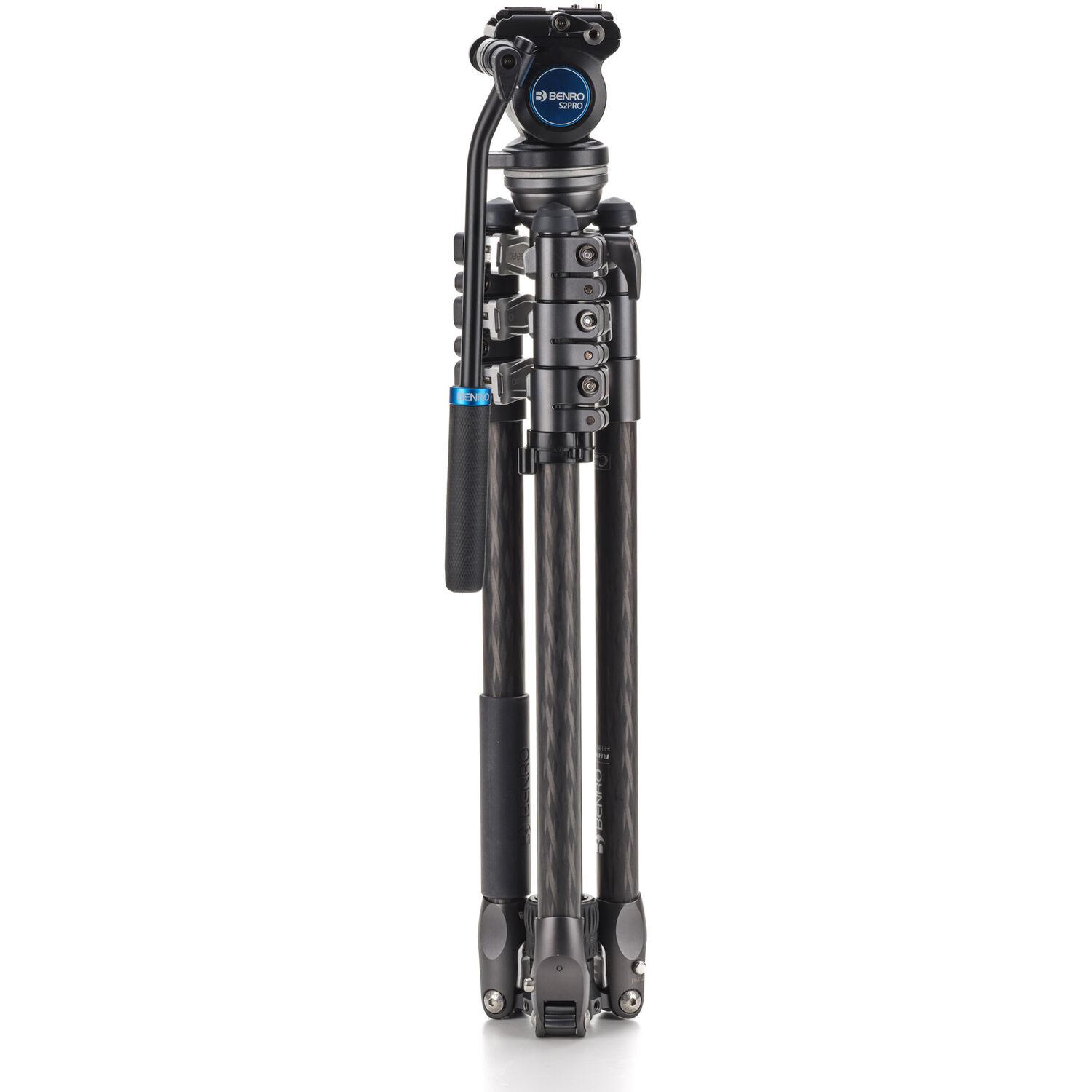 The S2 PRO head features fixed pan and tilt drag and has independent pan and tilt locks. The tilt range is +90/-70°, and the pan range is a full 360°. It also features a bubble level to assist with balancing. The included pan bar can be attached to the right or left rosette.