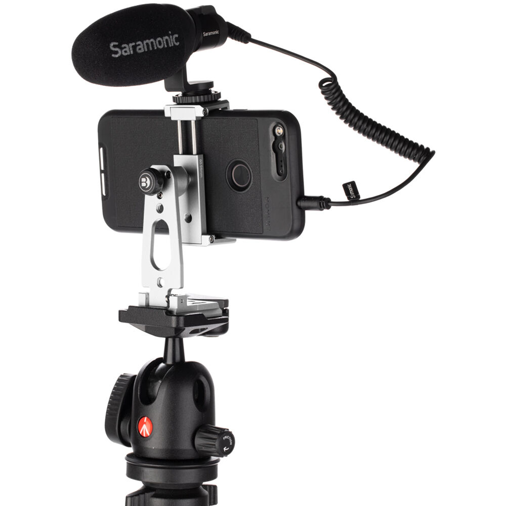 The Sidekick Pocket Smartphone Adapter from Benro is a foldable smartphone adapter designed to make producing content with a phone even easier. With a one-size-fits-all design, the Sidekick Pocket fits phones from 2.4-3.7" wide and folds to pocket size for portability. The spring-loaded phone mount rotates 90° for vertical or horizontal composition.