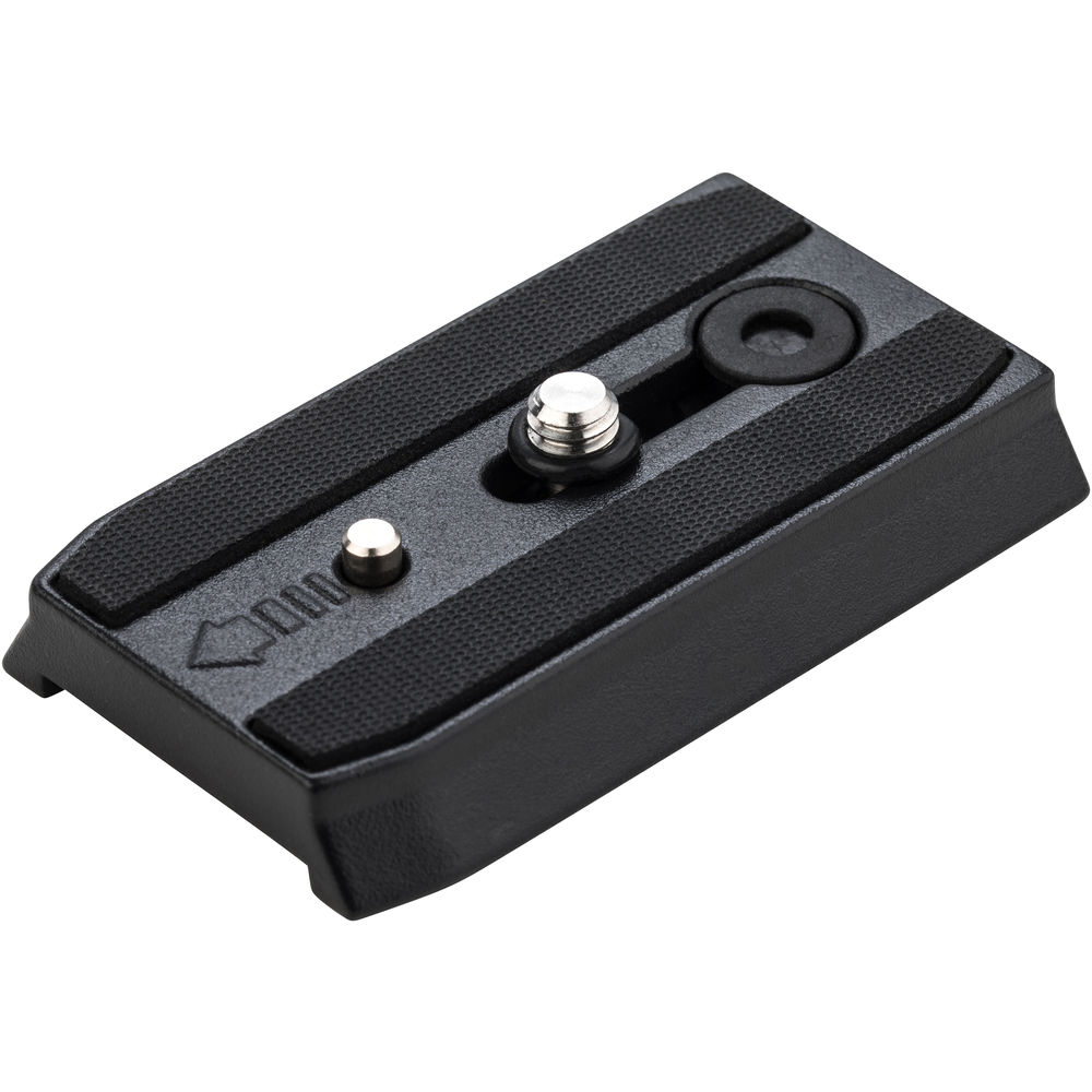 The video head offers smooth damping for both pan and tilt movements. It features an adjustable pan bar and an Arca-Swiss style camera plate with a D-ring 1/4"-20 mounting screw.
