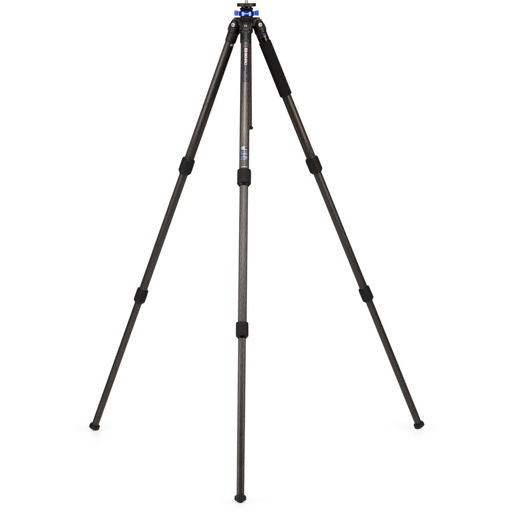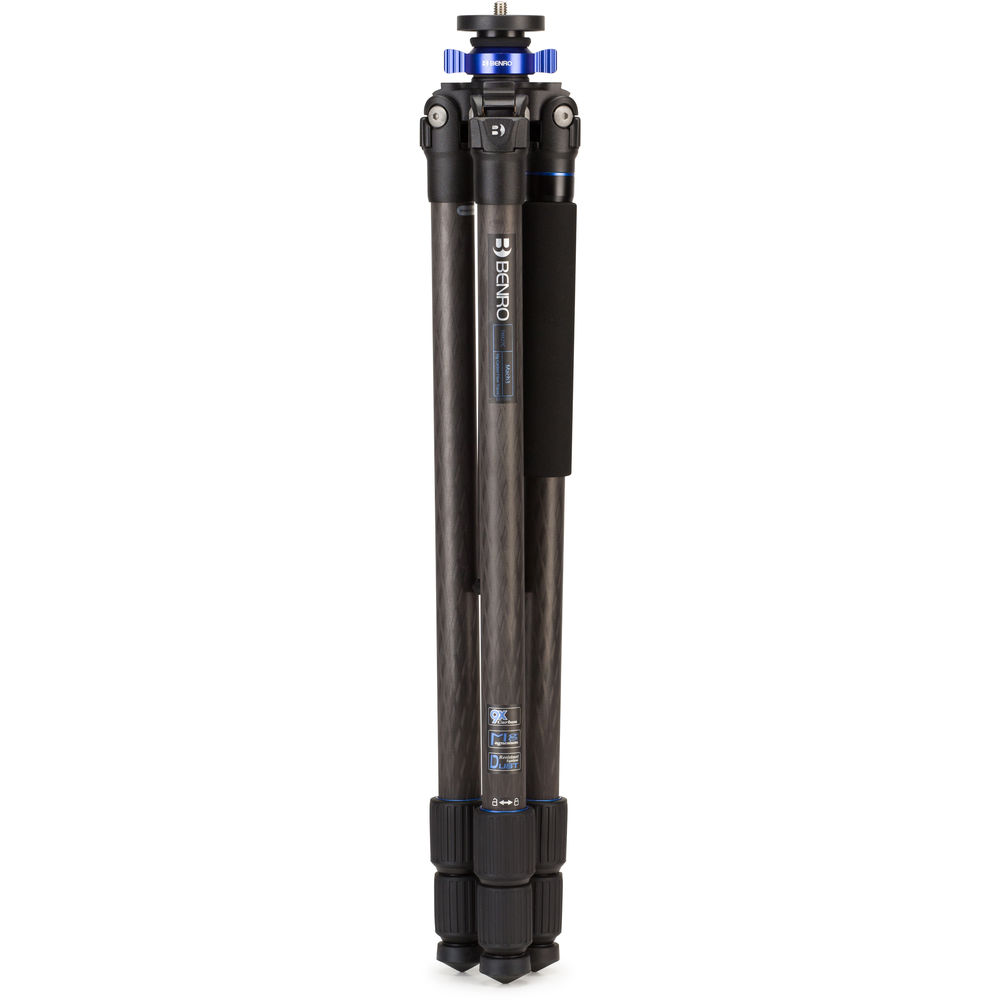 Support up to 30.9 lb worth of gear with the TMA27C Series 2 Mach3 Carbon Fiber Tripod from Benro. Made from 9-layer carbon fiber, the 3-section legs are secured via twist locks and extend to a maximum height of 63.8". The center column can be replaced with the included short column to allow the tripod to reach a minimum height of 15.2". One of the legs unscrews from the tripod, attaches to the center column, and with the addition of an optional head converts to a monopod. The rubber feet can be swapped out for metal spikes so that the tripod can be used on hard surfaces, such as ice, or soft surfaces, like carpeting or a lawn. A ballast hook on the center column allows for the addition of stabilizing weight, and the included carrying case protects the tripod during transport. A 3/8"-16 threaded stud on the mounting platform lets you attach a head of your choice.