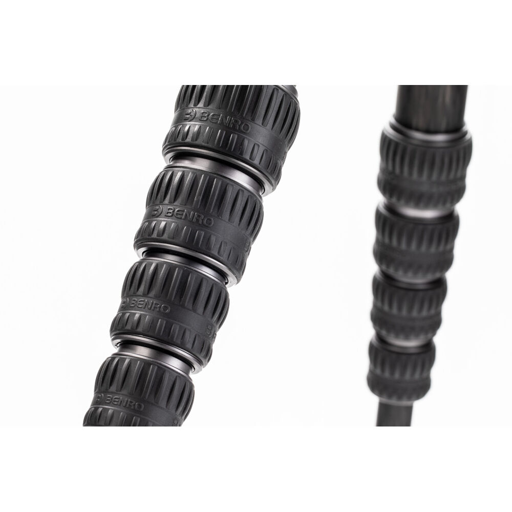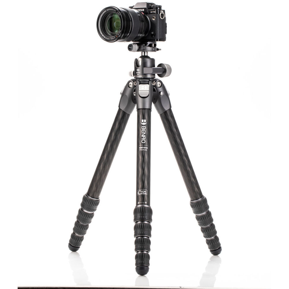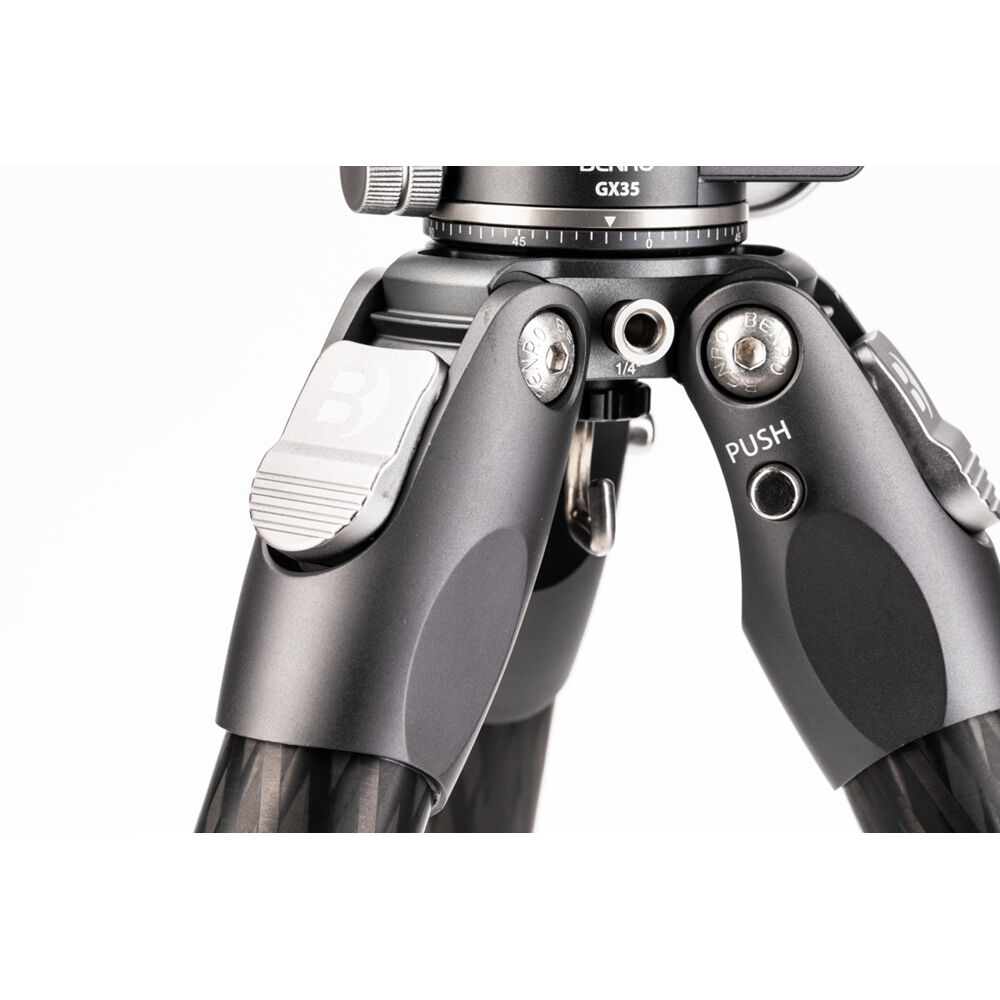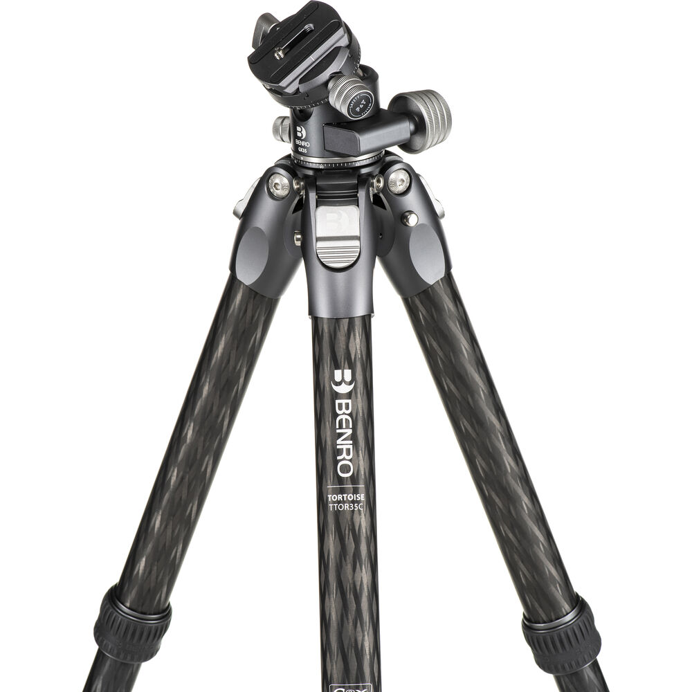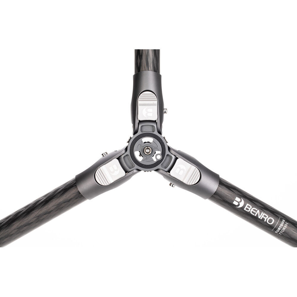 The small yet mighty Tortoise Columnless Carbon Fiber Three Series Tripod with GX35 Ball Head from Benro is a compact, lightweight travel tripod with a high load capacity and remarkable stability. The center column-free design makes it nimble and lightweight for travel and reduces the potential for shake common to high center column positioning. This is especially significant when shooting video content. The legs offer independent spread and three locking positions and incorporate automatic leg angle adjustment for fast and sure setup. The aluminum leg spider features a 1/4"-20 accessory mounts for extension arms, monitors, lights, and more. The rubber feet feature three distinct contact surface providing a grip whether the legs are vertical, on an angle, or nearly horizontal when positioned.