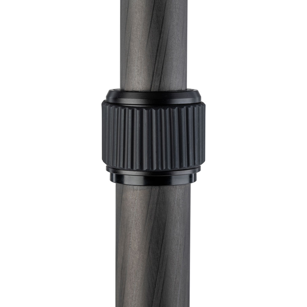 The black 2 Series Tripster Travel Tripod from Benro is a four-section carbon fiber tripod with a two-section center column that combine to reach a maximum height of 61.4", while weighing 3.5 lb. Splaying the legs completely out, the support drops to a minimum height of 15.6". Moreover, the legs fold in the reverse to a compact 15.7", so you can carry it to the next location. The removable center column and one leg can combine to create a monopod with a maximum height of 64.2". The Arca-type compatible ball head has a load capacity of 26 lb and includes a quick release plate with a 1/4"-20 camera mounting thread. Additionally, a 1/4"-20 socket located on the yoke of the tripod is used to attach other accessories that would aid you in creating a photograph.