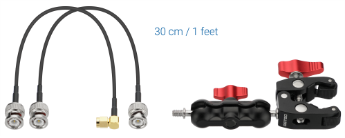 1pc bag antenna holder, 1pc BNC-BNC and 1pc BNC-SMA(RA) 30 cm long cables for connecting antenna to the receiver or multicoupler.