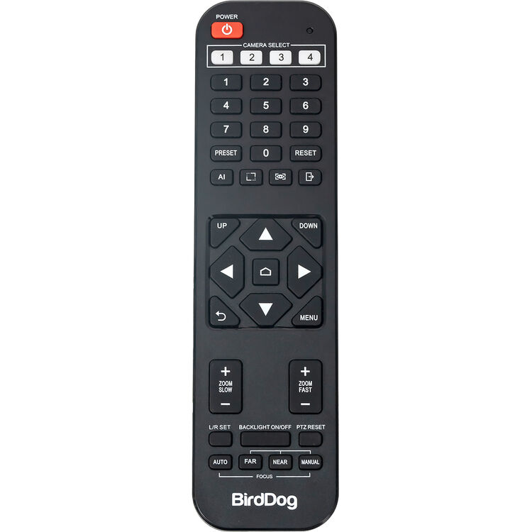 Control your PTZ camera wirelessly with this Infrared Remote Control from BirdDog. The unit is designed to work specifically with the X1 and X1 Ultra cameras.