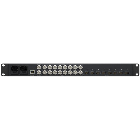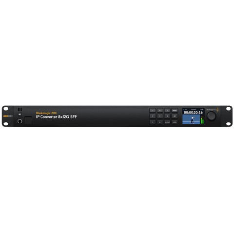 Bring your 12G-SDI broadcast gear up to SMPTE-2110 compliance with this 2110 IP Converter 8x12G SFP from Blackmagic Design. The converter provides eight bidirectional 12G-SDI video conversion connections, and it features eight SMPTE-2110 SFP IP fiber ports to extend connectivity over long distances. Its 1 RU design fits in a standard studio rack, as well as a 12G-SDI return input.