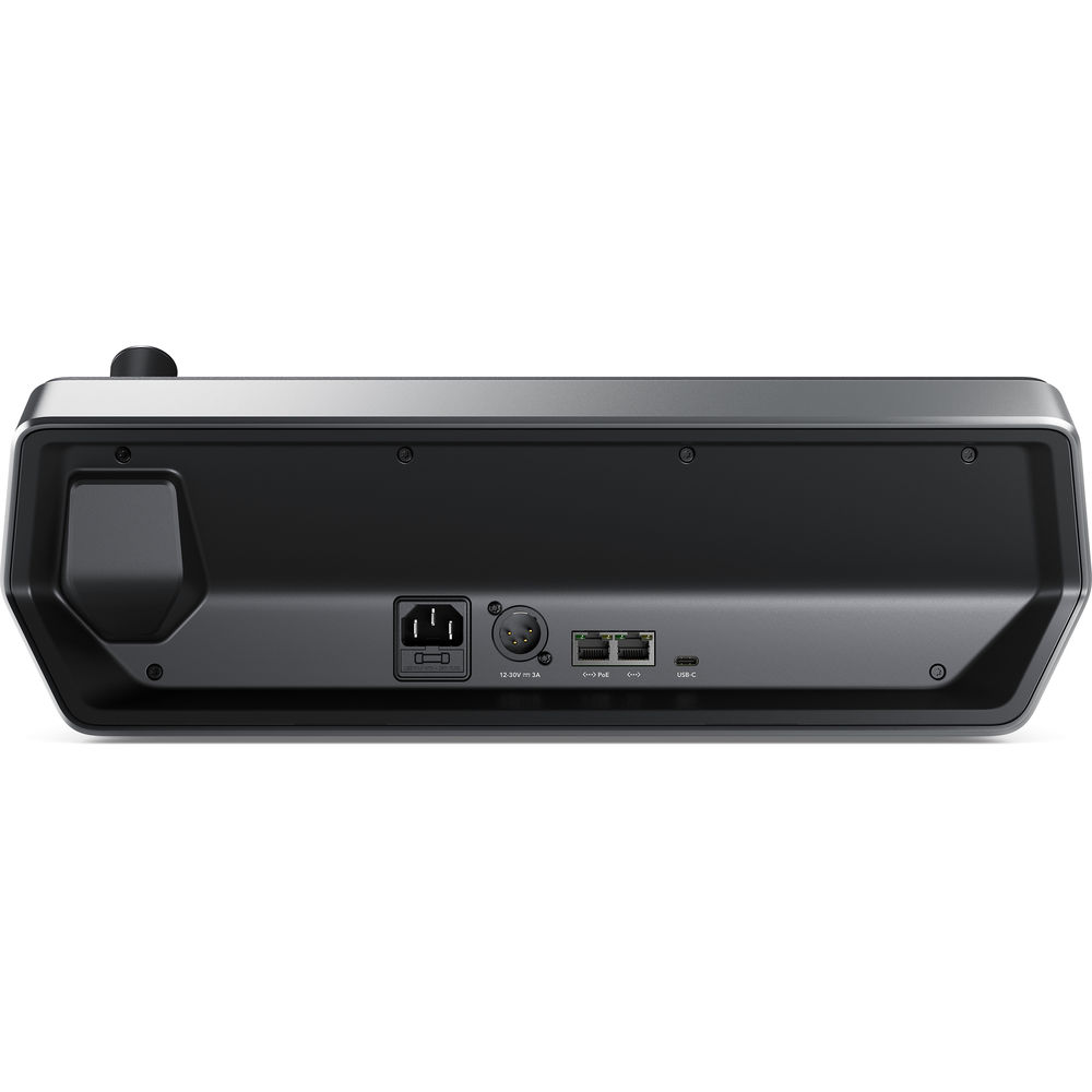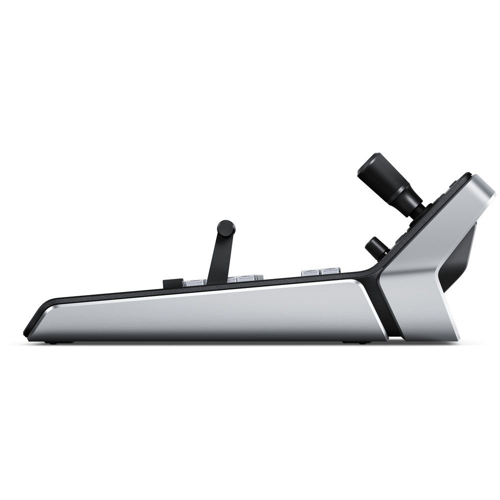 The Blackmagic Design ATEM 1 M/E Advanced Panel is a full-featured hardware control panel for BMD ATEM switchers. It connects via Ethernet and provides hands-on tactile control, essential for broadcast studios. An LCD information display surrounded by soft-touch menu buttons and rotary encoders allows for intuitive programming of control functions. Aside from the main display, each programmable button has an LCD scribble strip to illustrate its function. Since buttons can perform different functions, up to 20 inputs can be accessed by shifting the 10 input buttons. The buttons themselves have curved indentations to help avoid incorrect keystrokes. Real-time dynamic controls are available in the form of a single 3-axis joystick and large weighted T-bar fader. Use the joystick to remotely control PTZ cameras or effects, and the T-bar to adjust transitions, wipes, fades, and more.